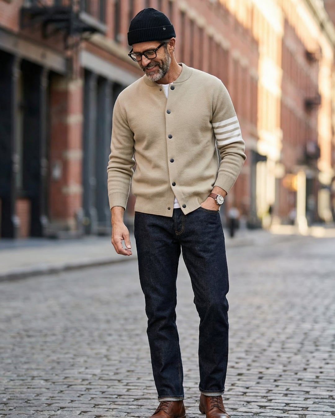 イーストコースト バーシティニットカーディガン 4色 A0083