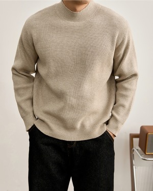 ミニマル リブクルーネックニット 4色 A0090
