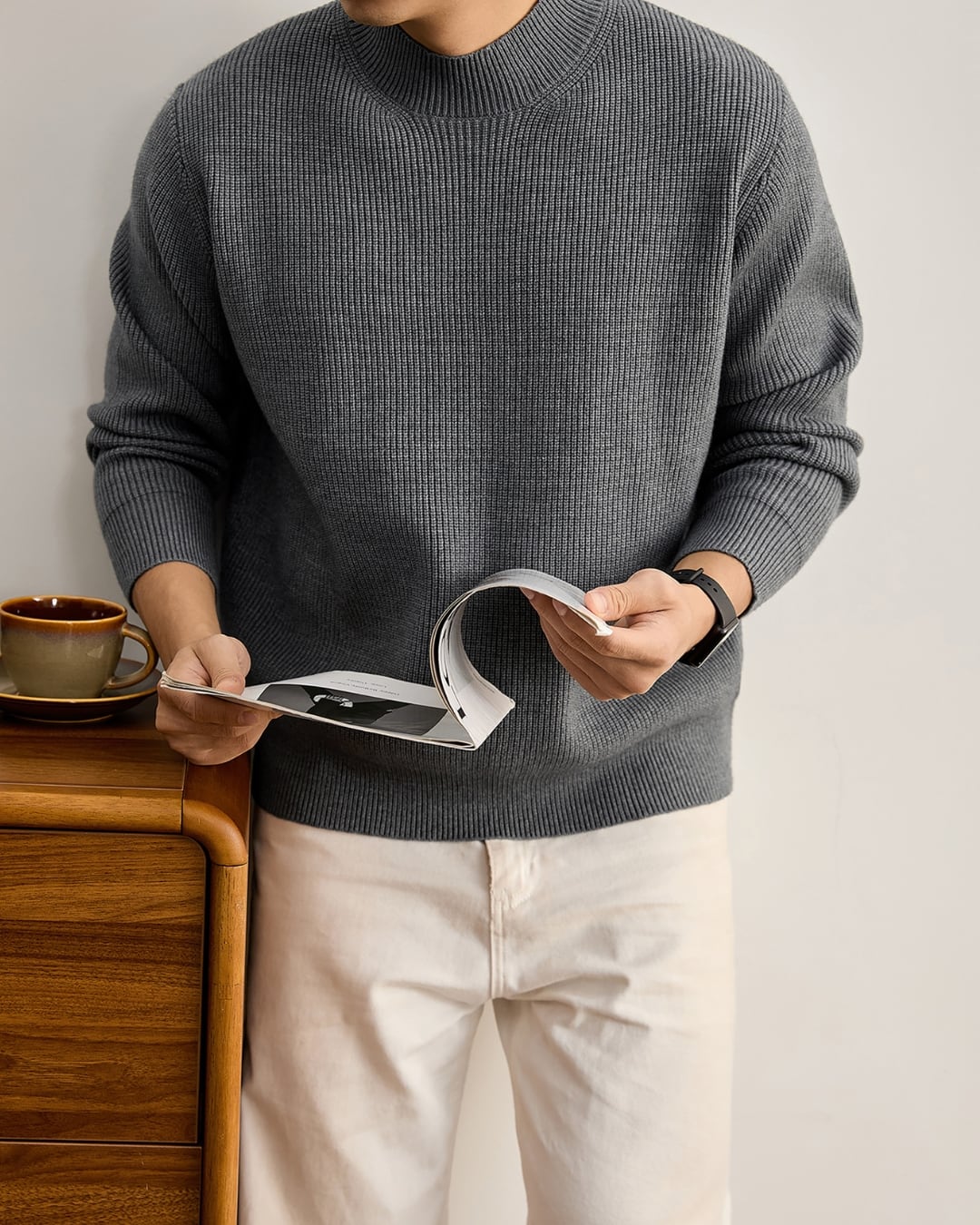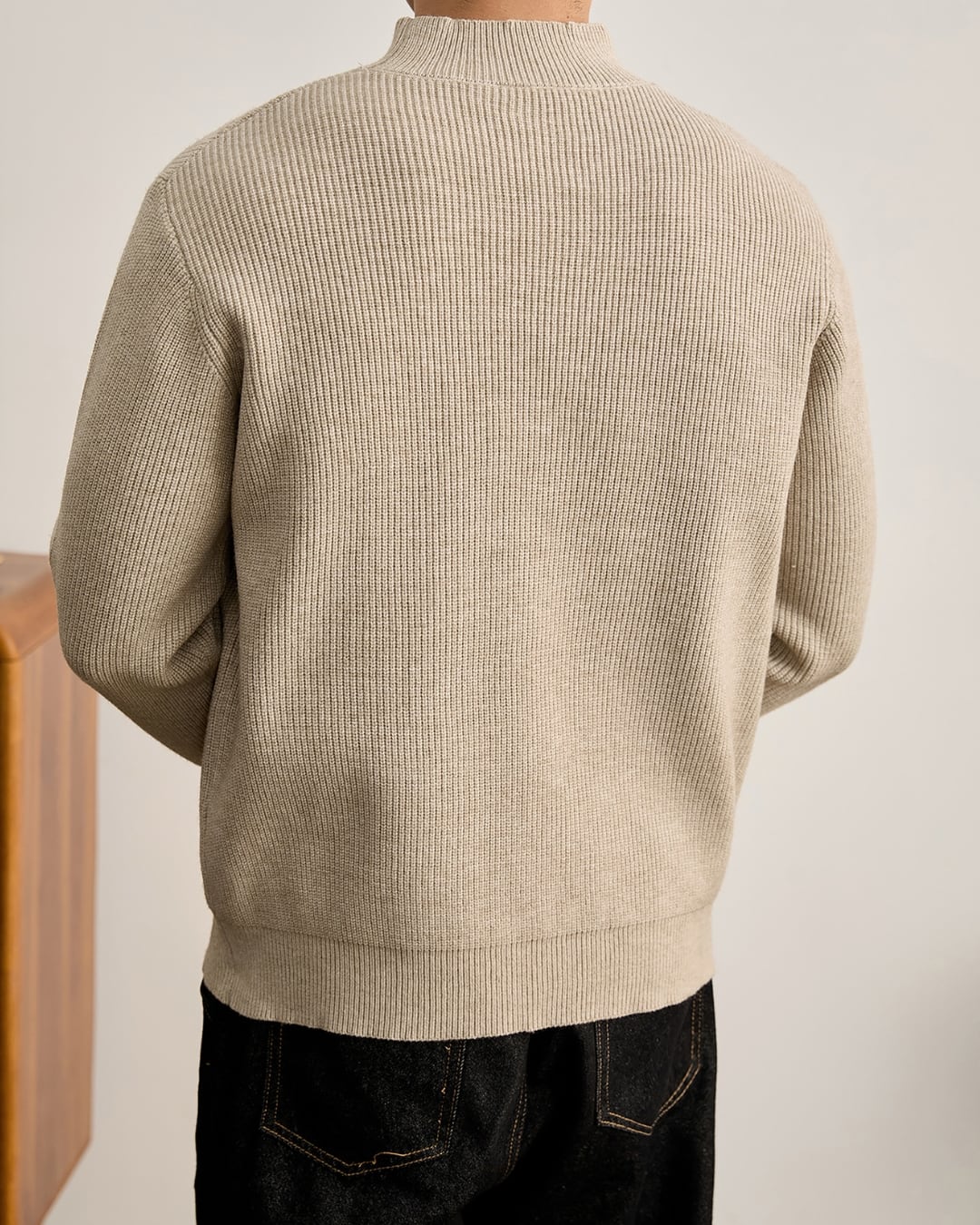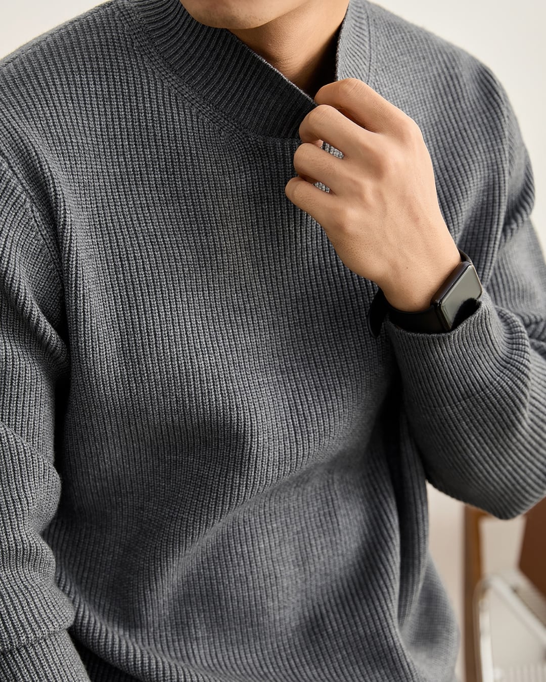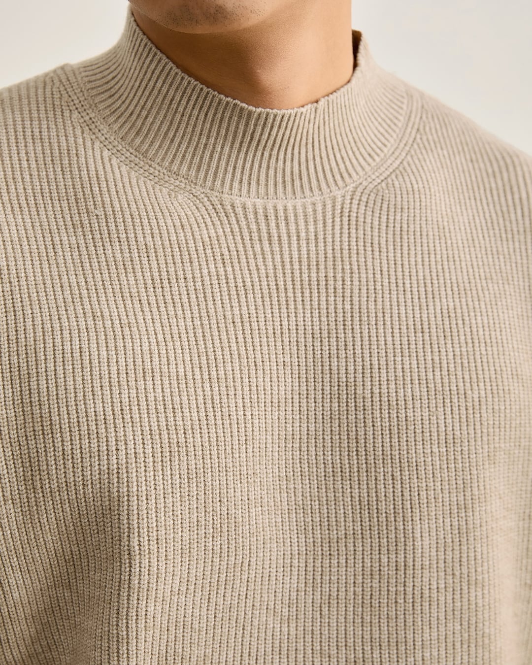 縦方向のリブ編みが全体に施され、