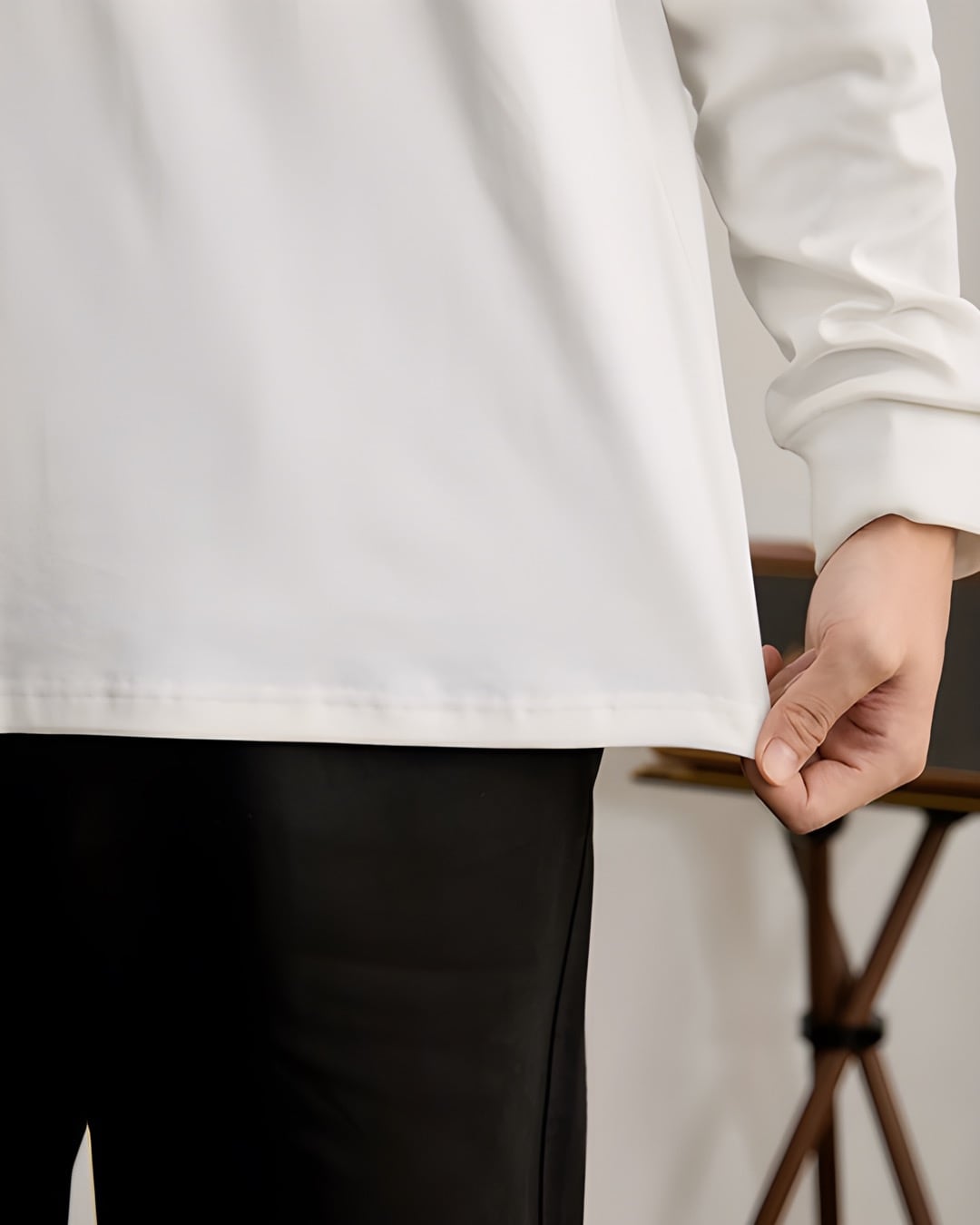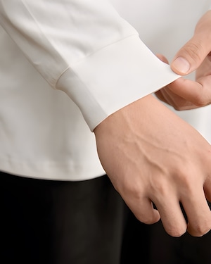 袖口と裾はシンプルな仕立てで、