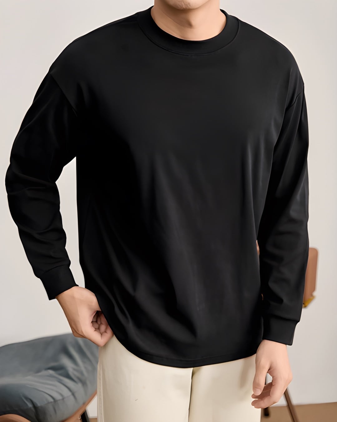 無地デザインの長袖カットソー。