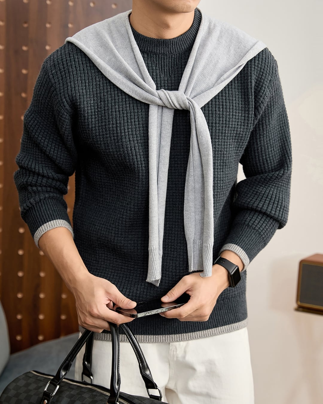 ミドルゲージで編み立てられた生地は、程よい厚みがありながらも、軽やかな着心地を実現。