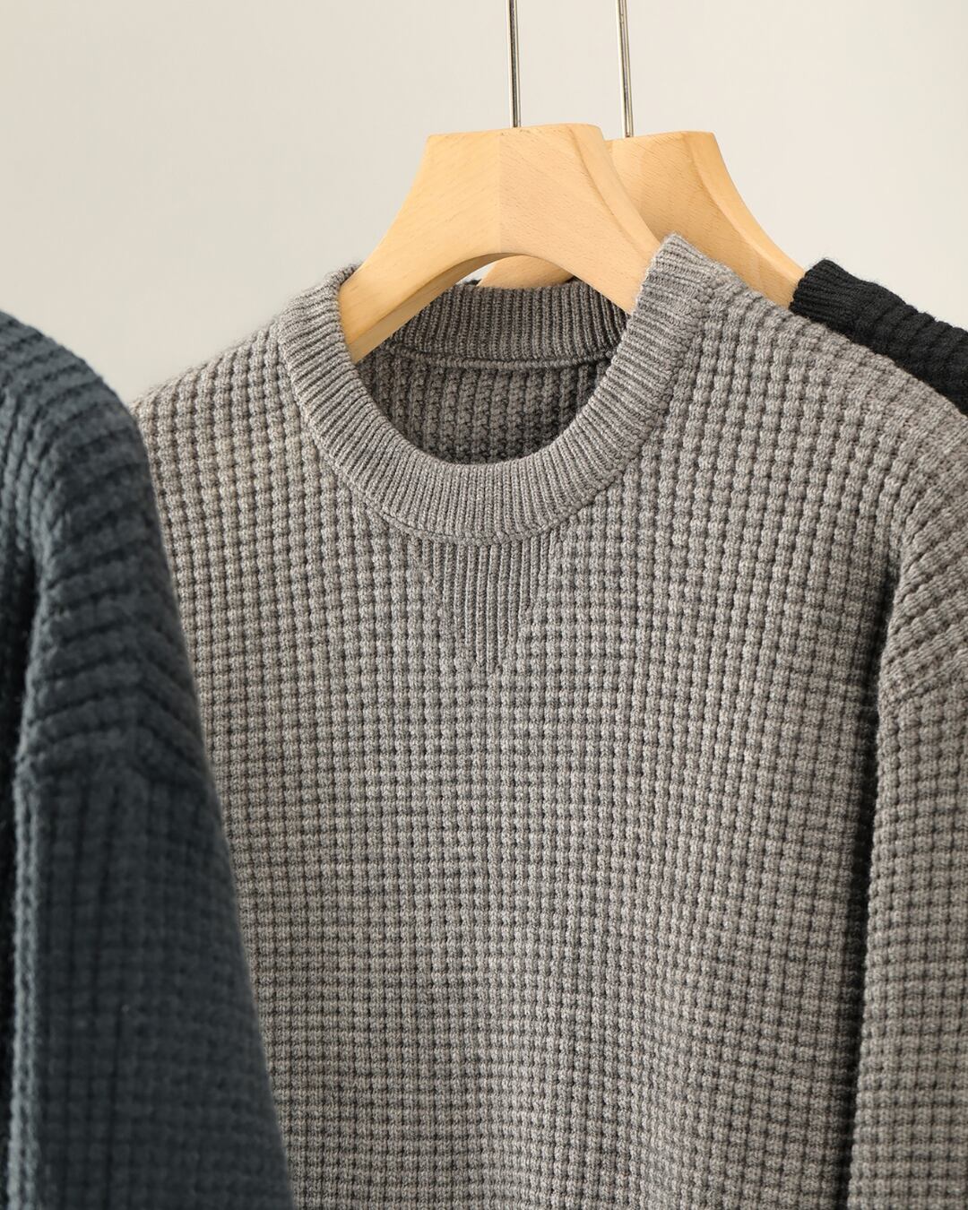 ワッフル クルーネックニット 3色 A0095
