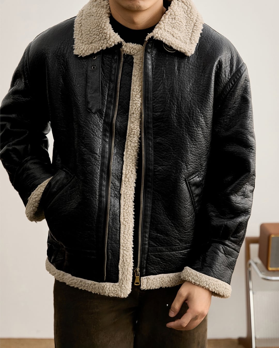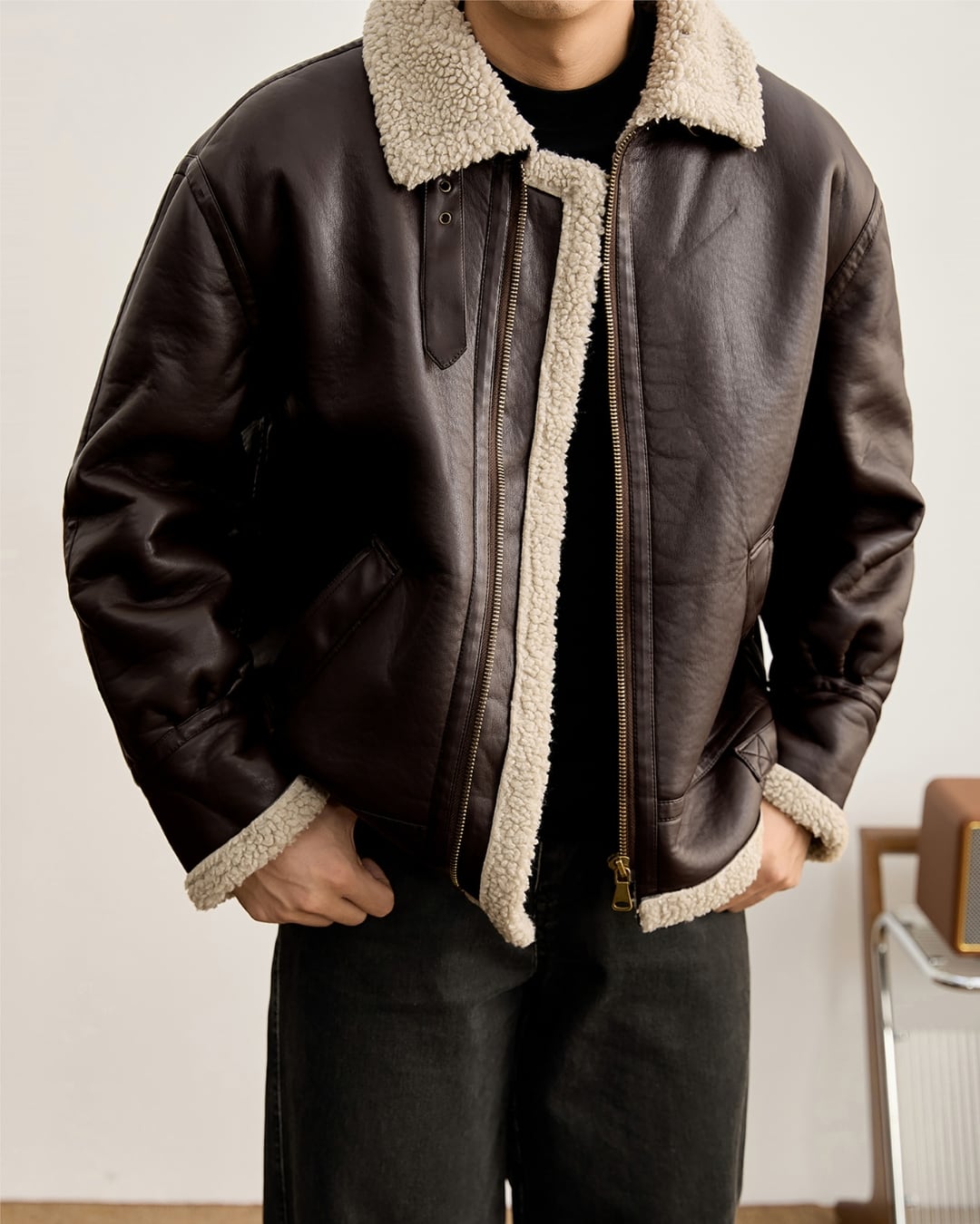 【ボリューム感のある、PUレザージャケット】