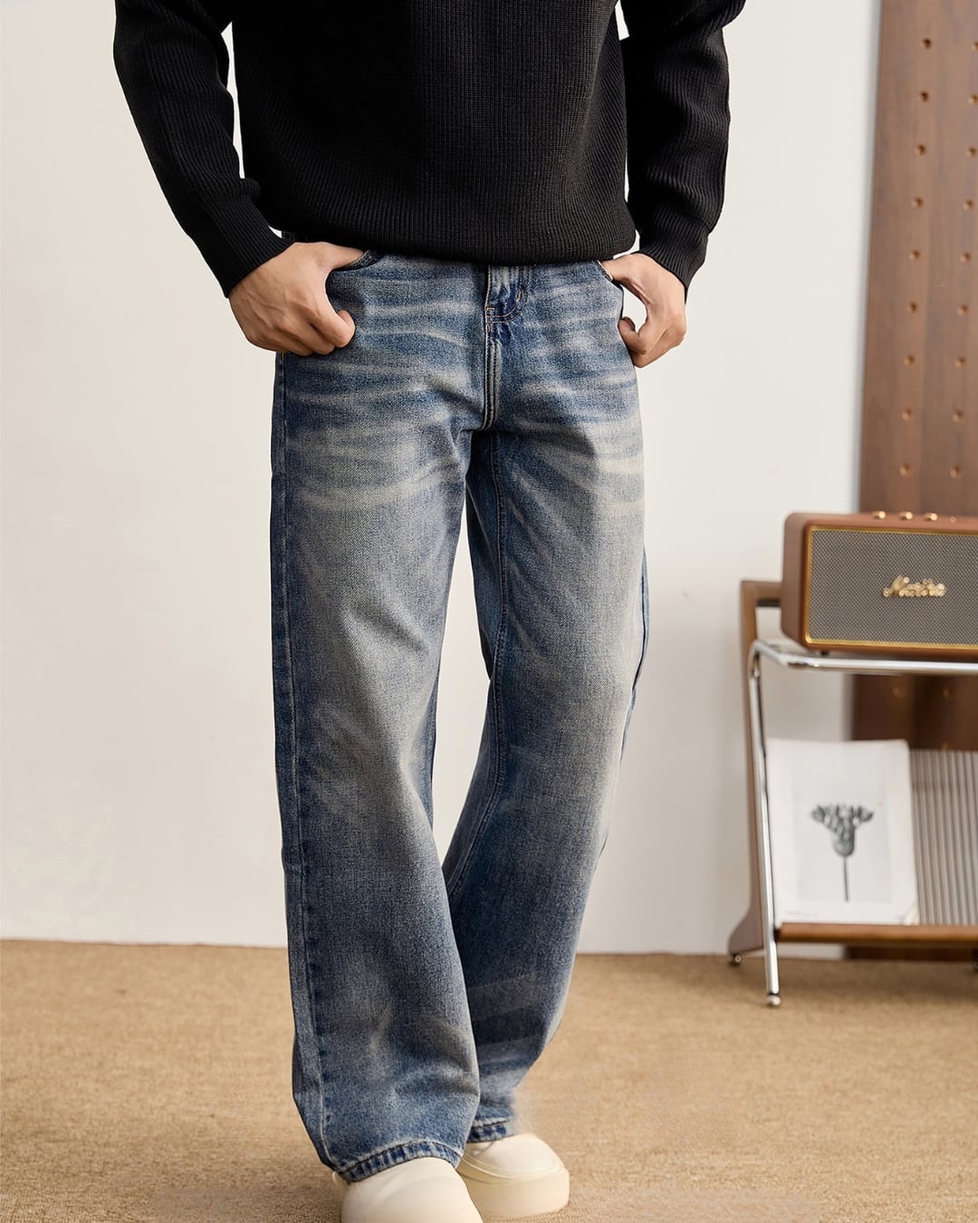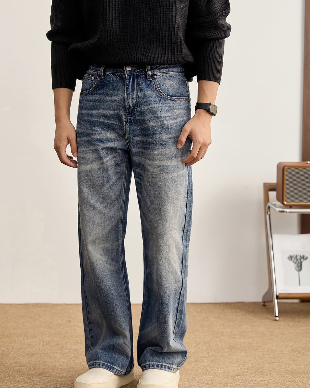 カジュアルな着こなしに欠かせない、ウォッシュ加工を施したワイドデニムパンツ。