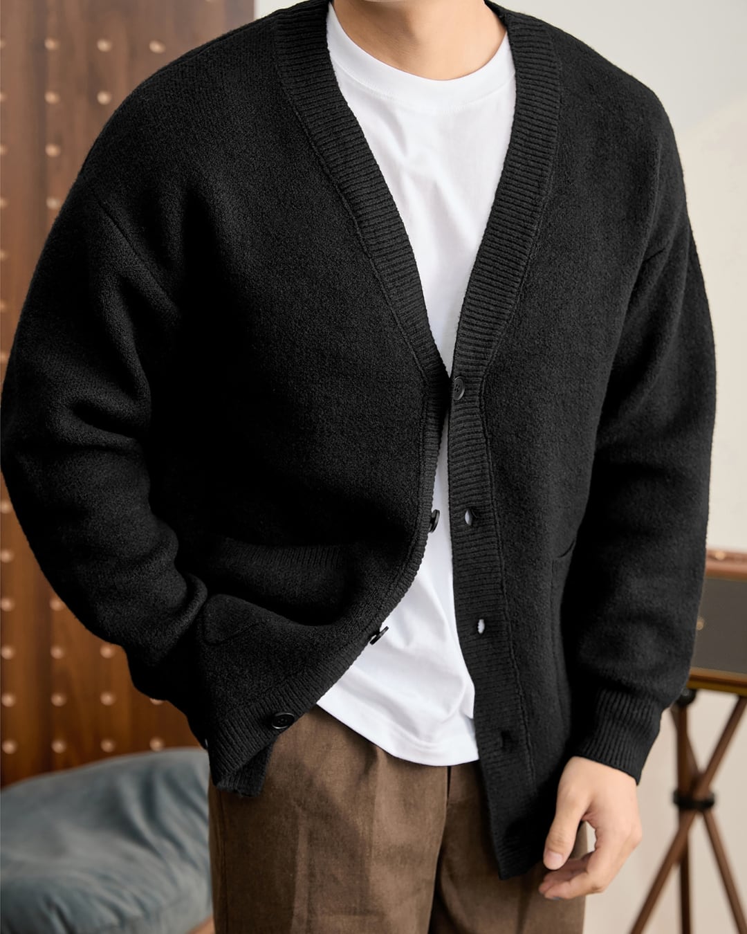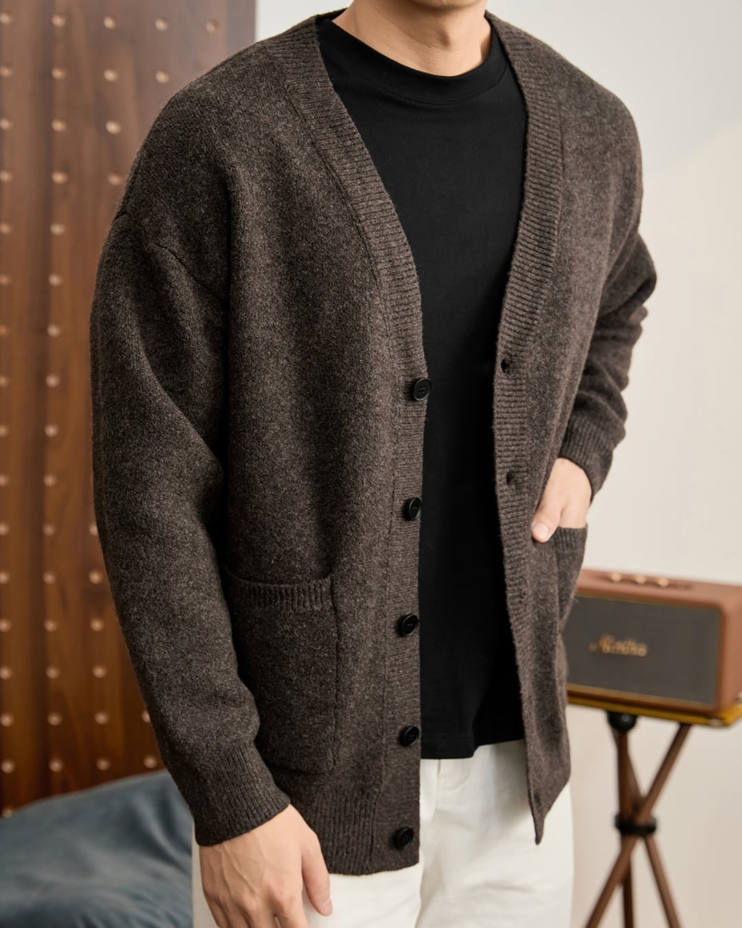 【素材の上質感が際立つ、大人のニットカーディガン】