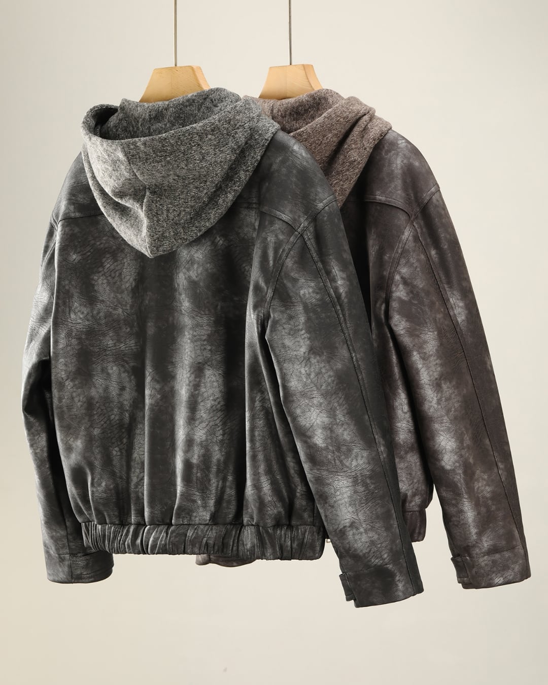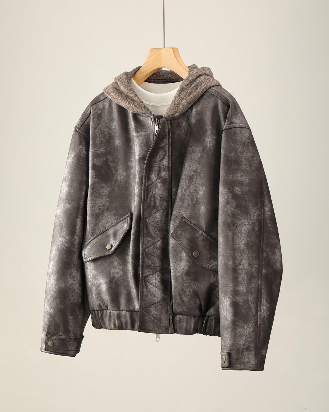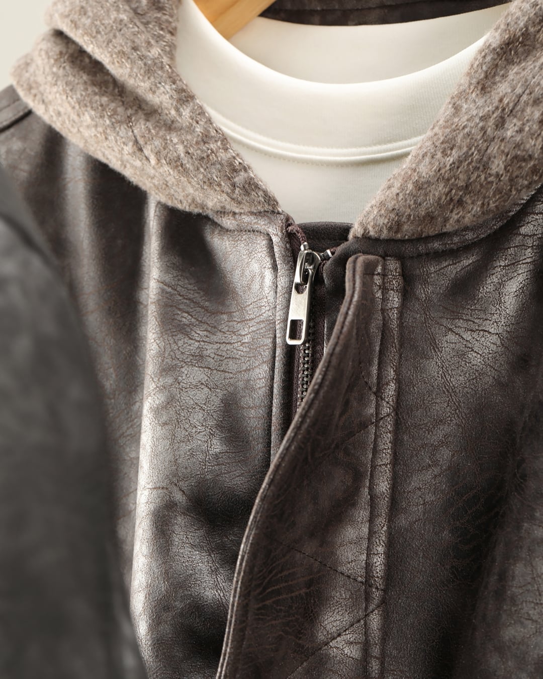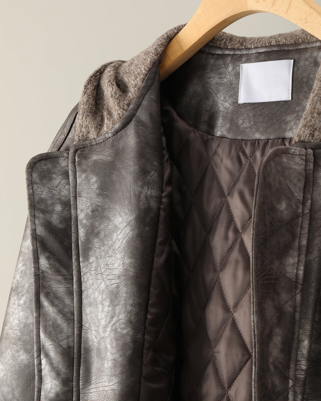 カジュアルながらも上品な印象のフェイクレザージャケット。