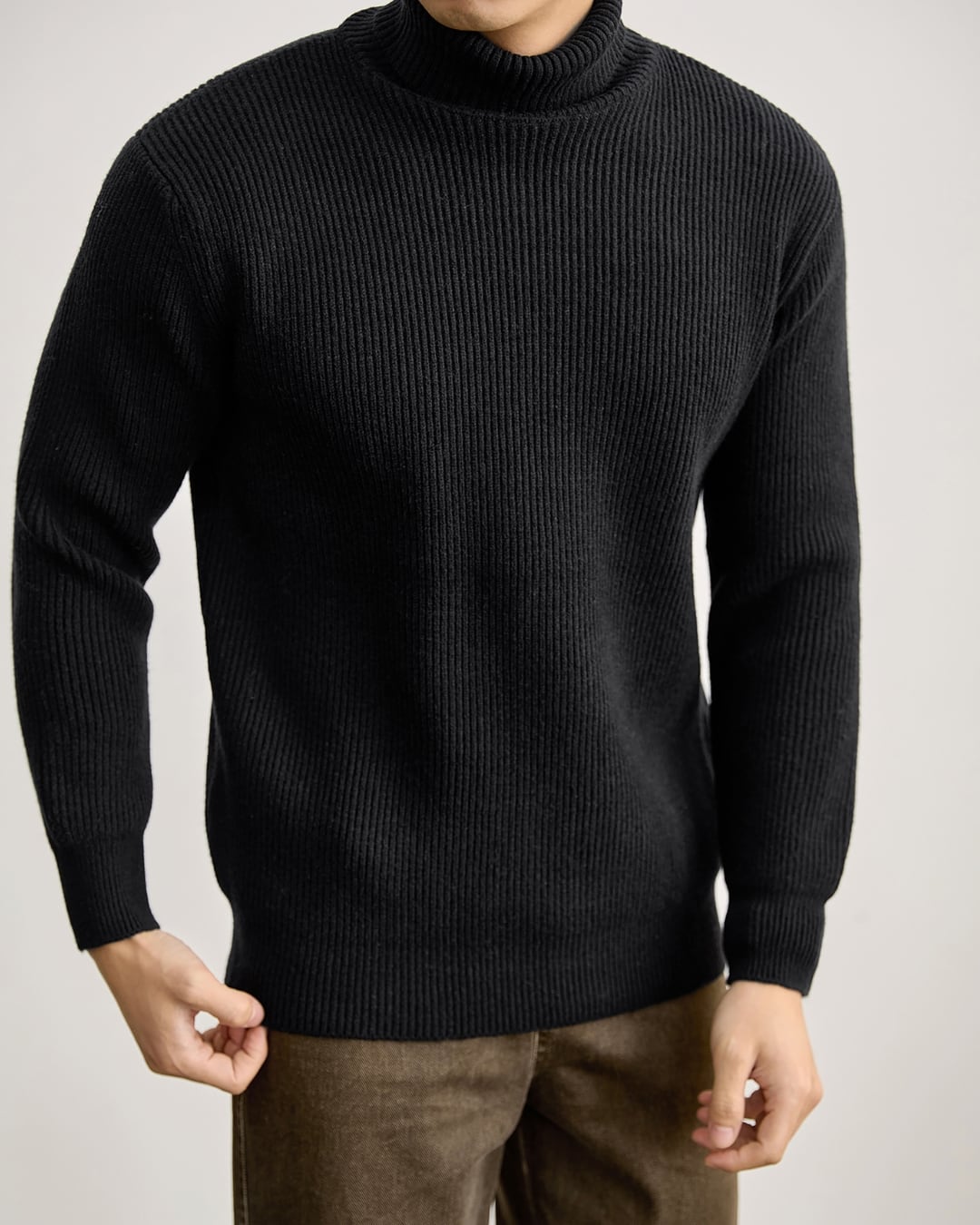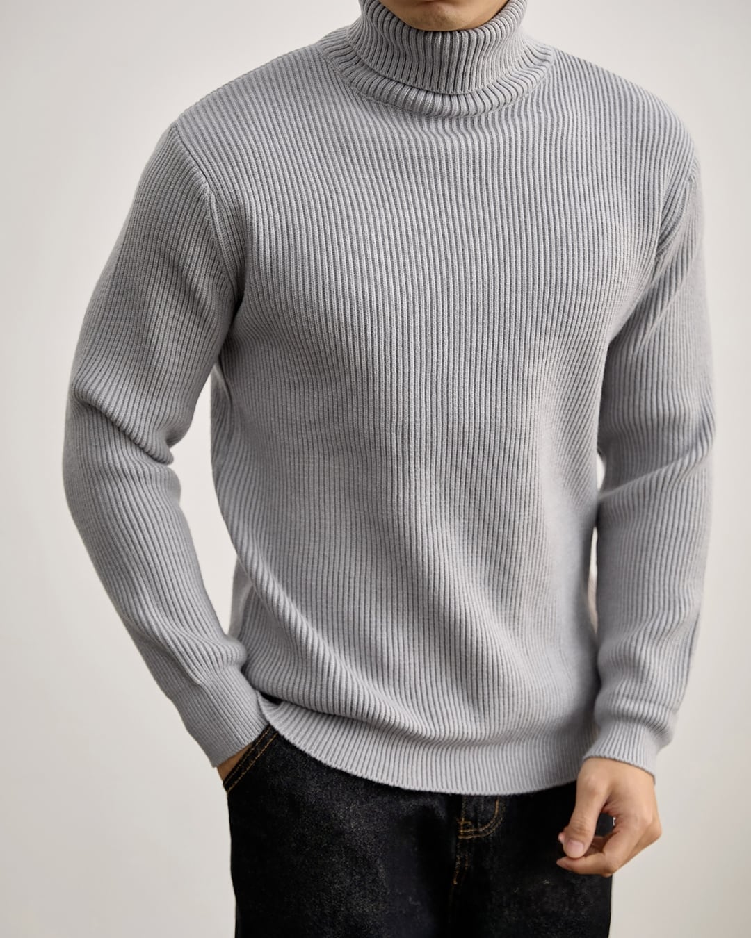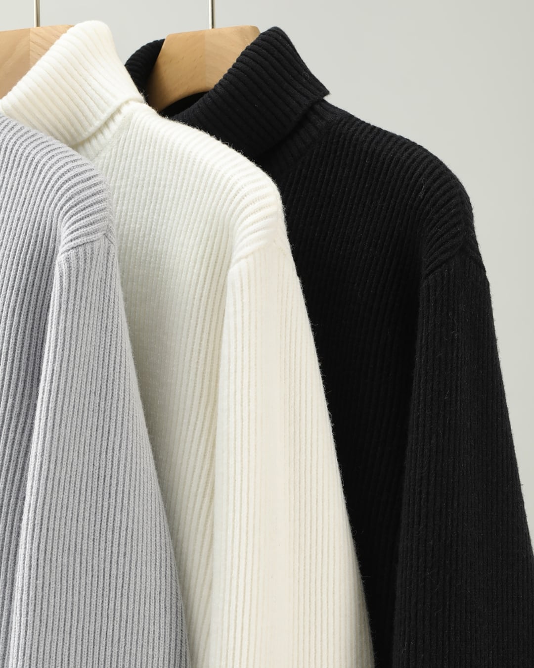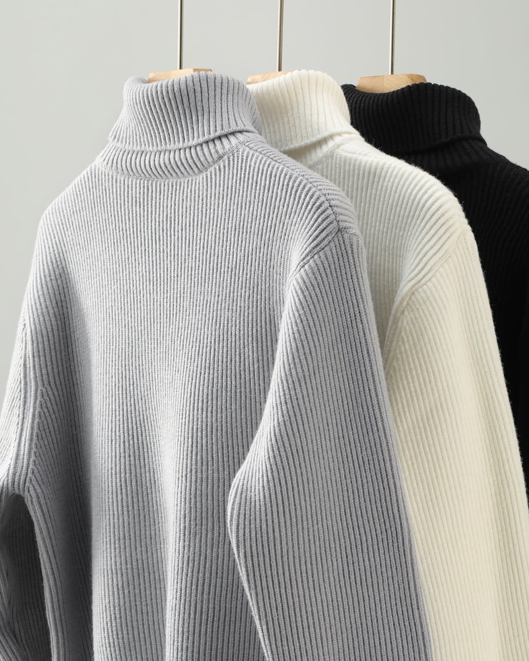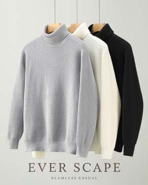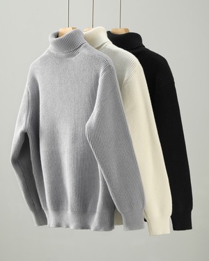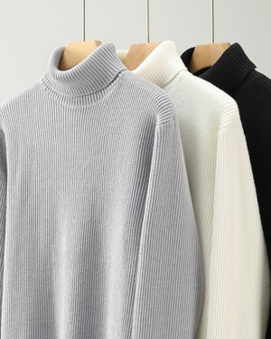 【ミニマルで洗練された、リブタートルニット】