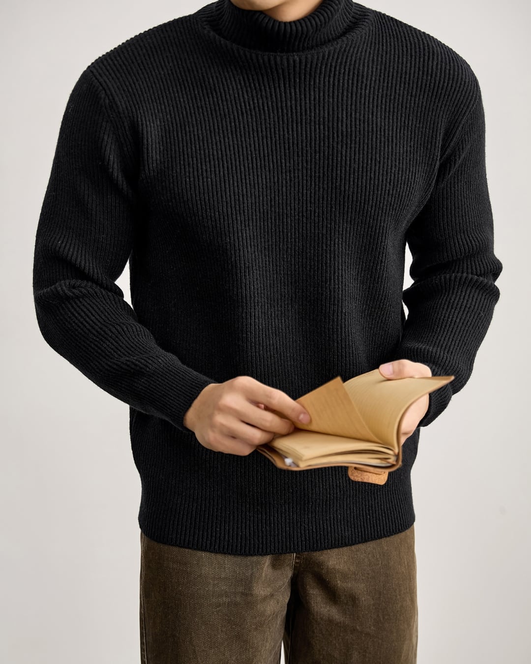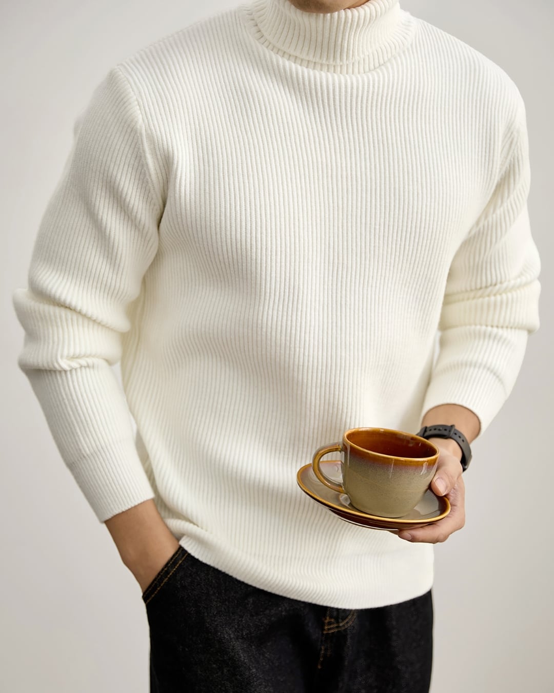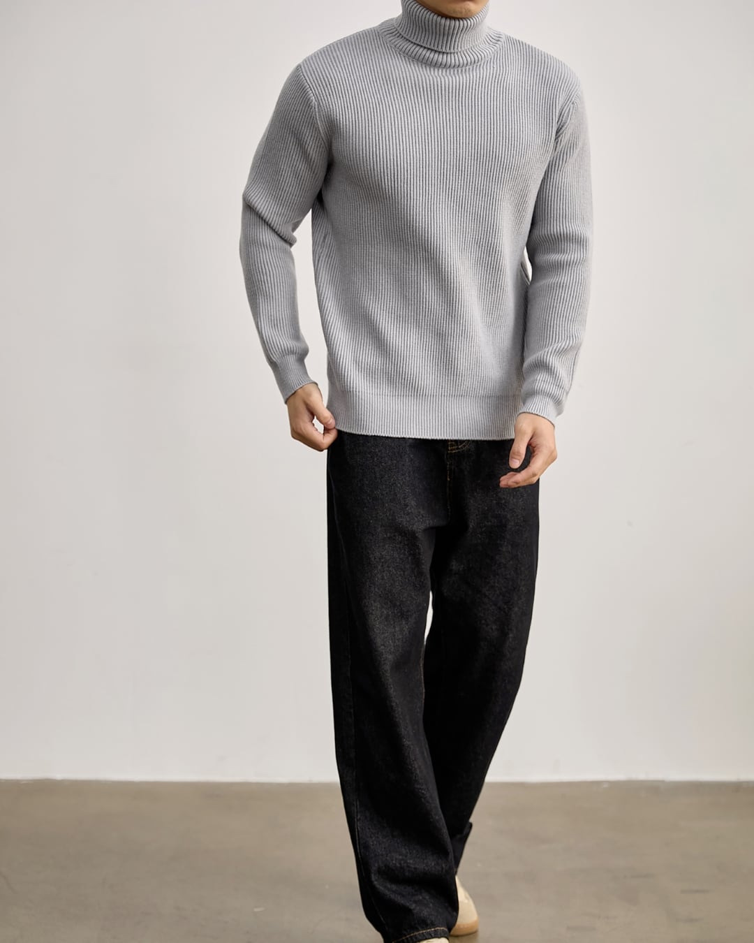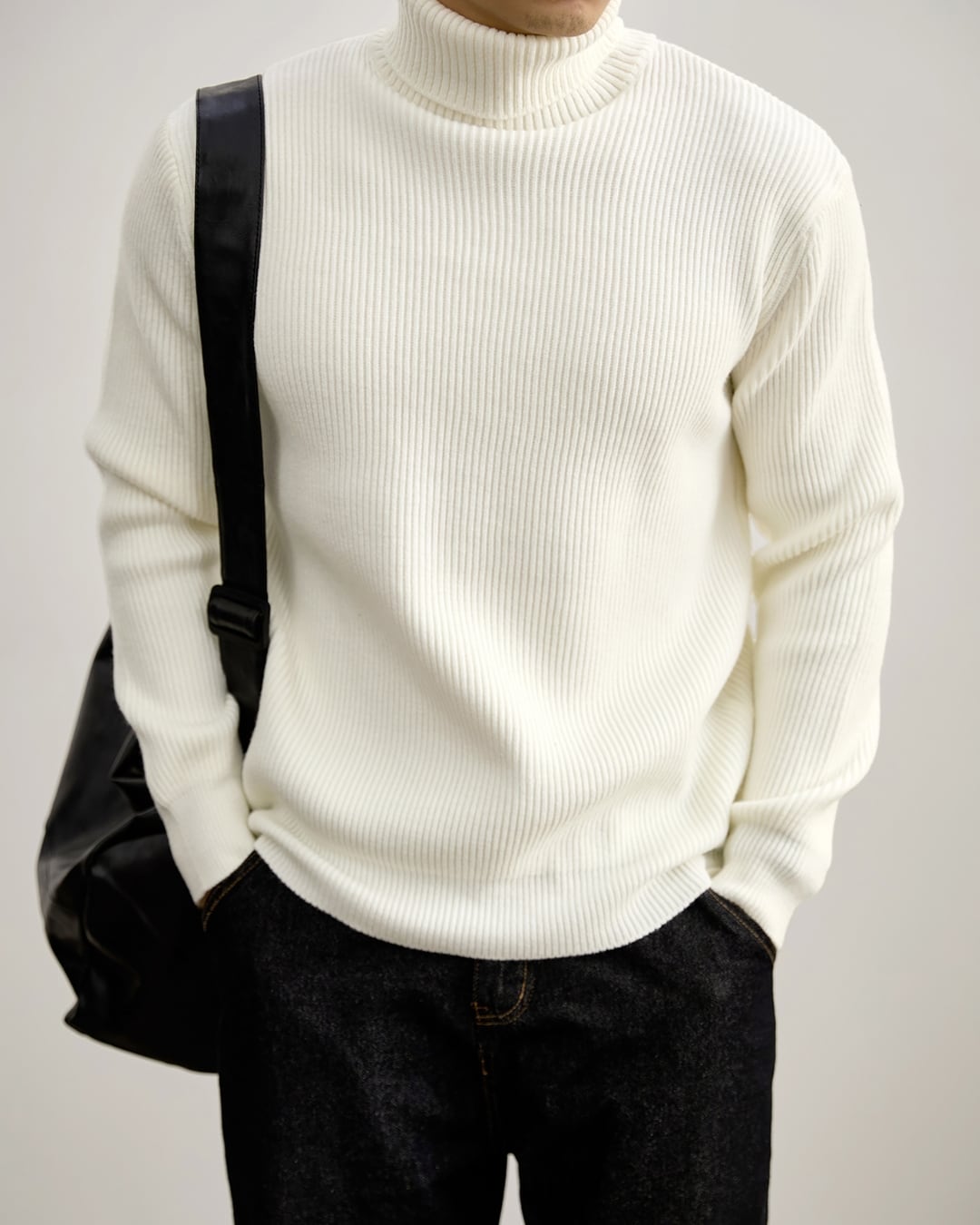 【ミニマルで洗練された、リブタートルニット】