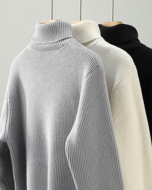 リブ編み タートルネックニット 3色 A0133