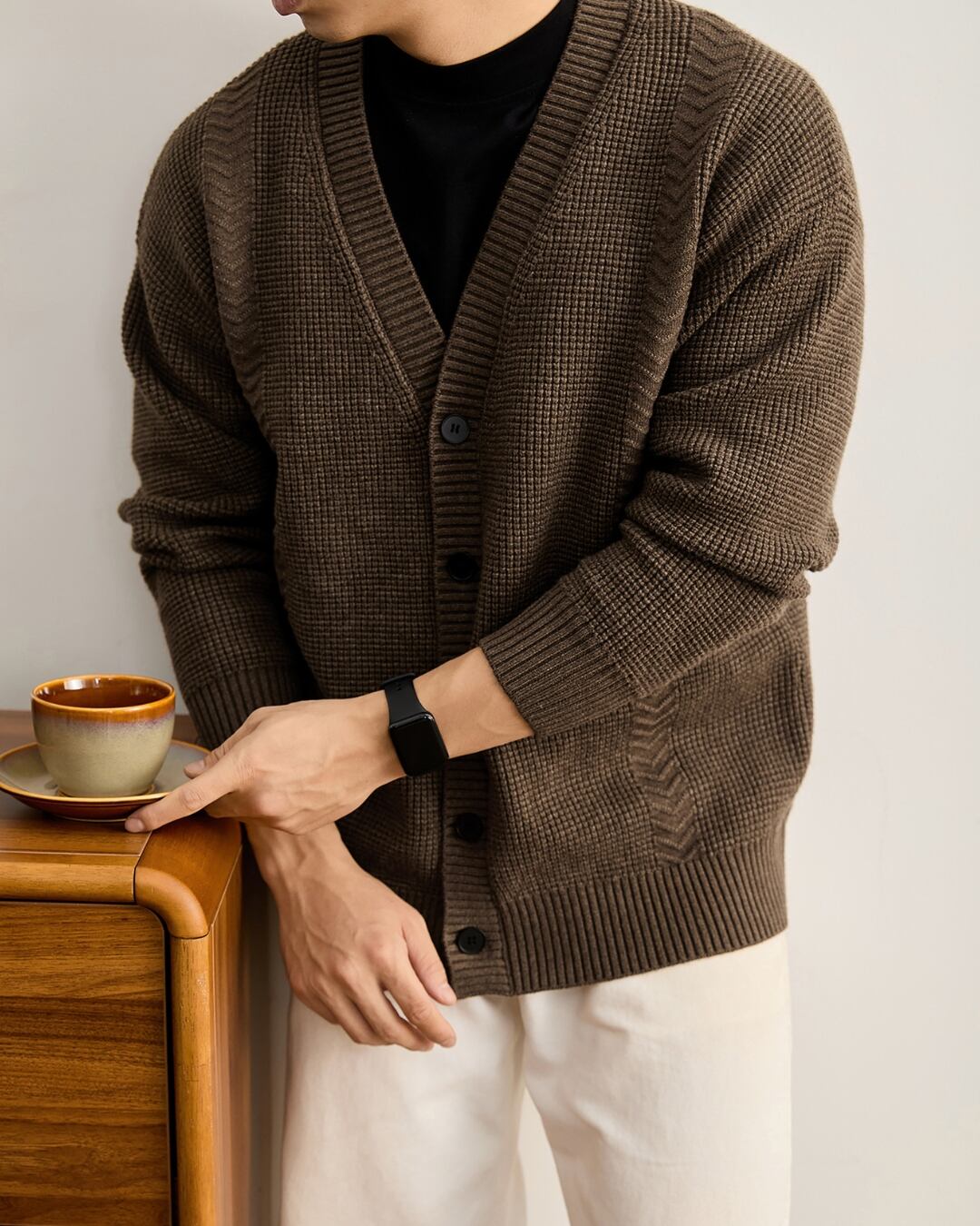 【表情のある編み地が魅力の、大人のニットカーディガン】