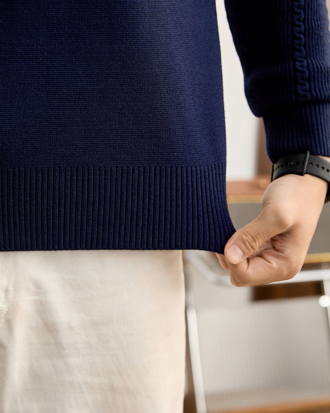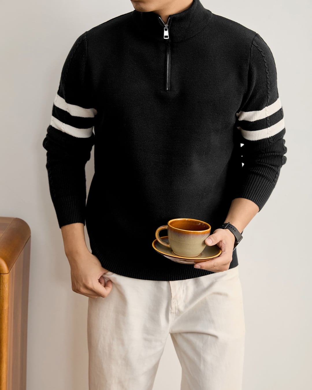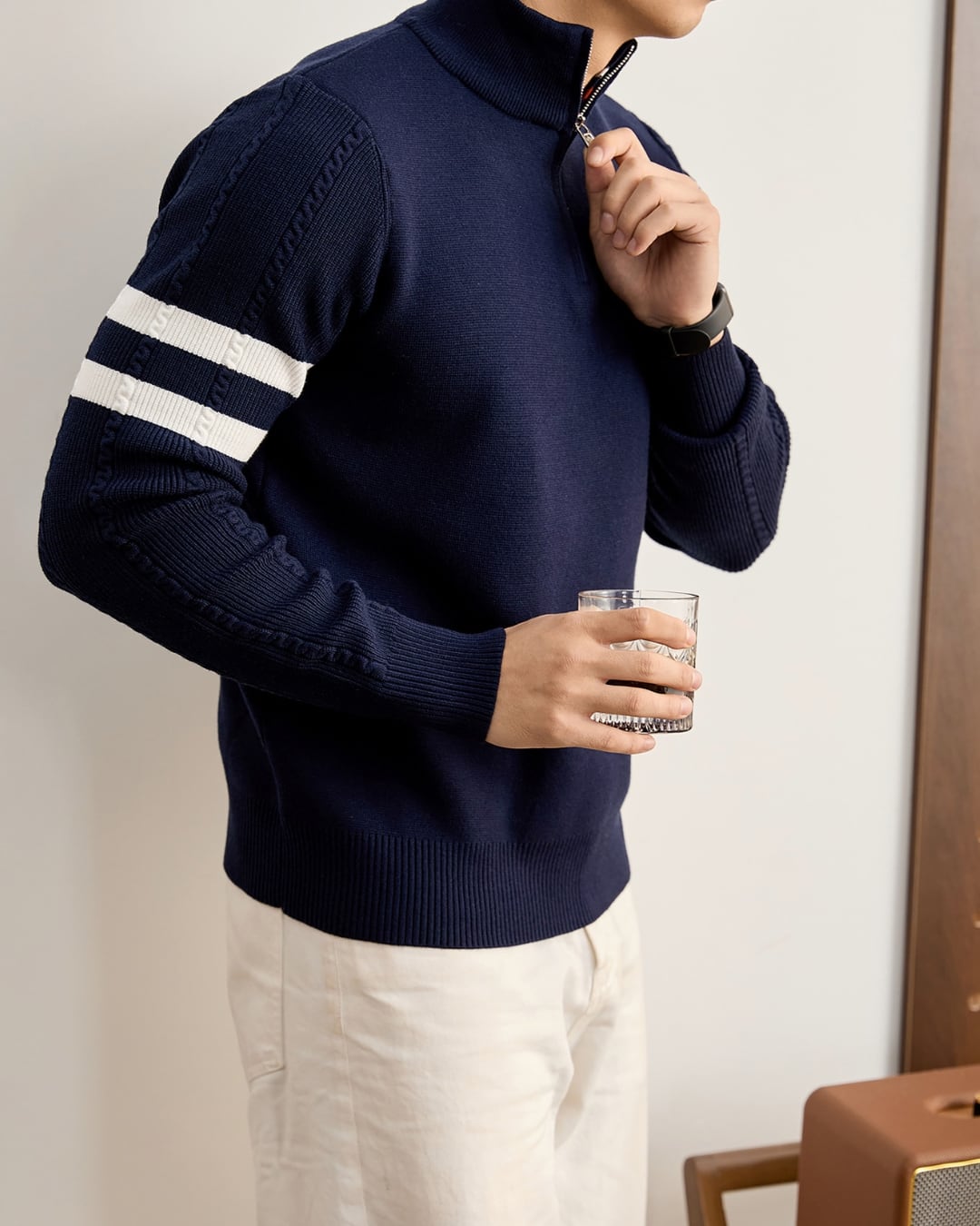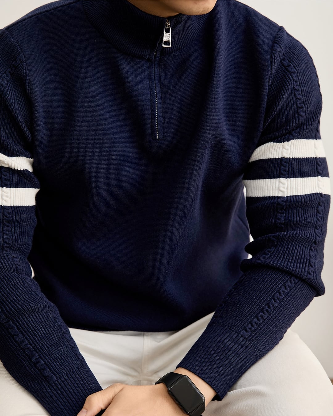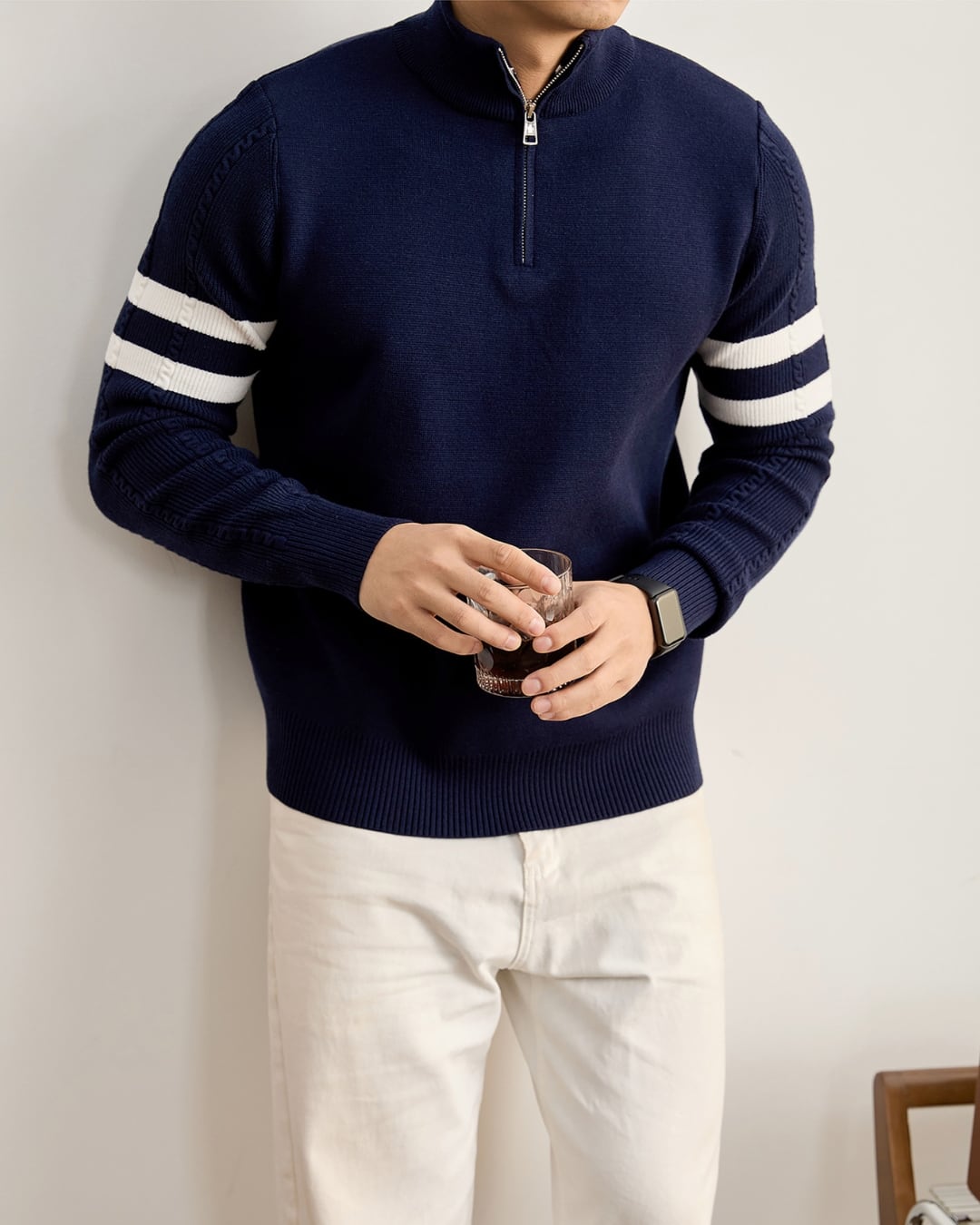 【スポーティさと上品さを兼ね備えた、大人のハーフジップニット】