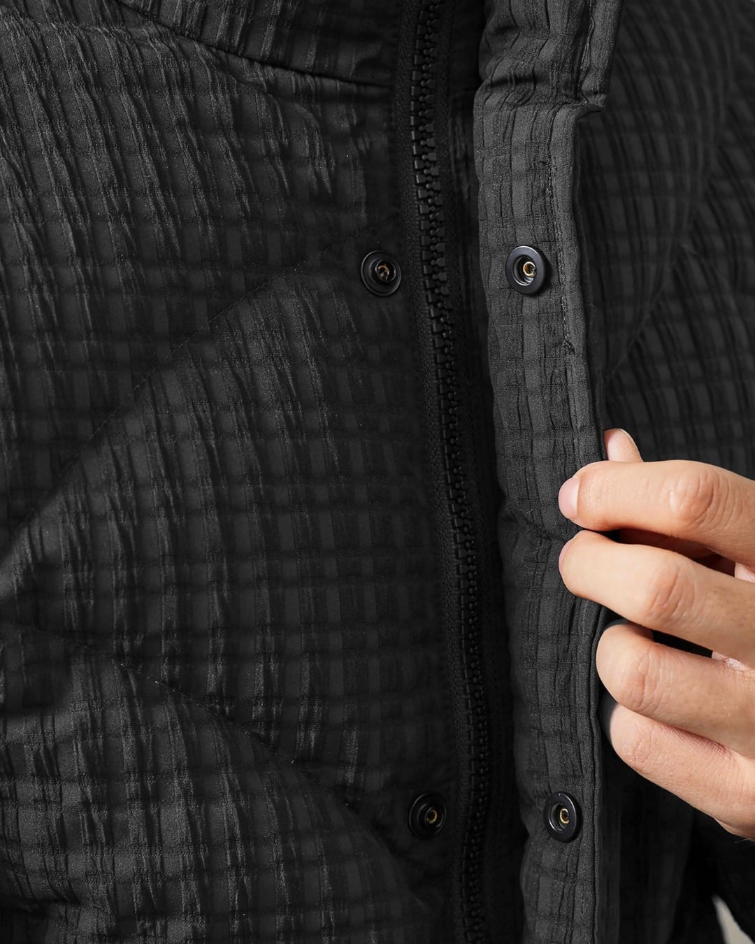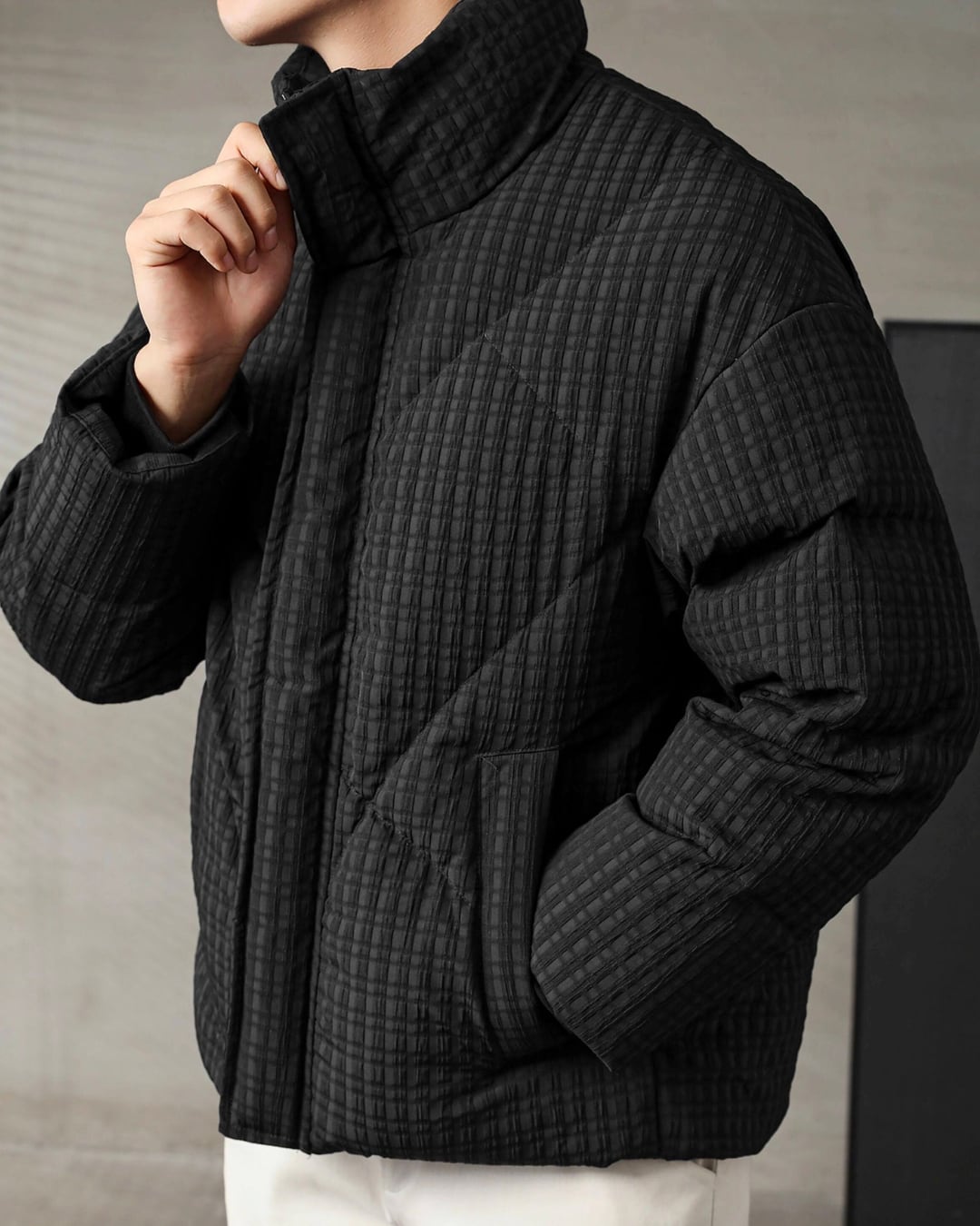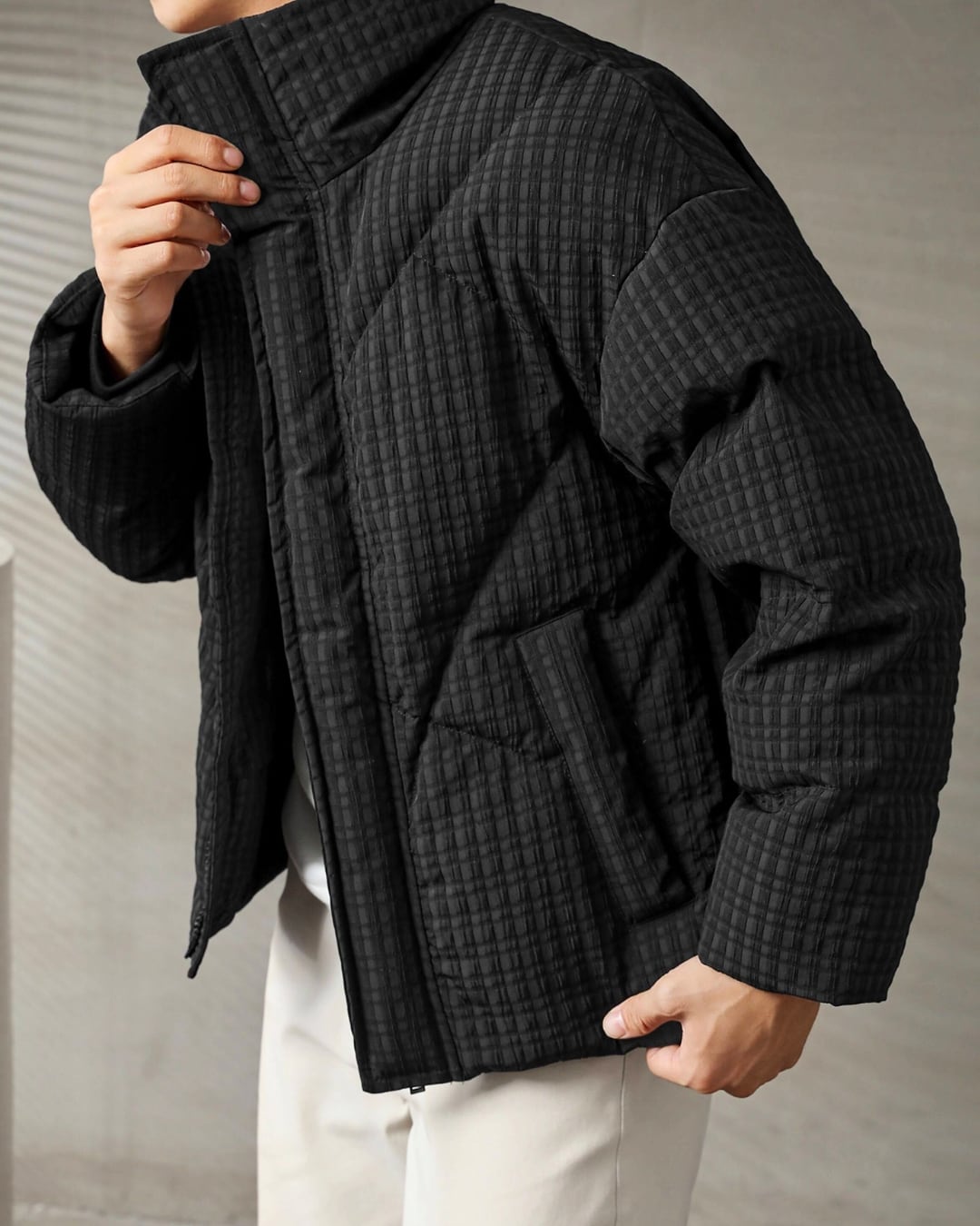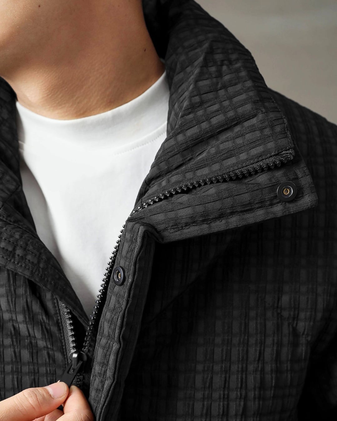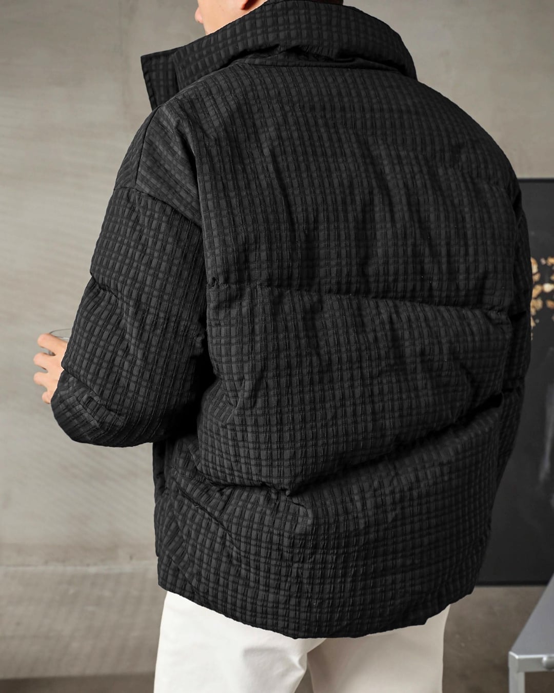 凹凸感のあるポリエステル素材を使用した、立体的な表情が魅力のダウンジャケット。