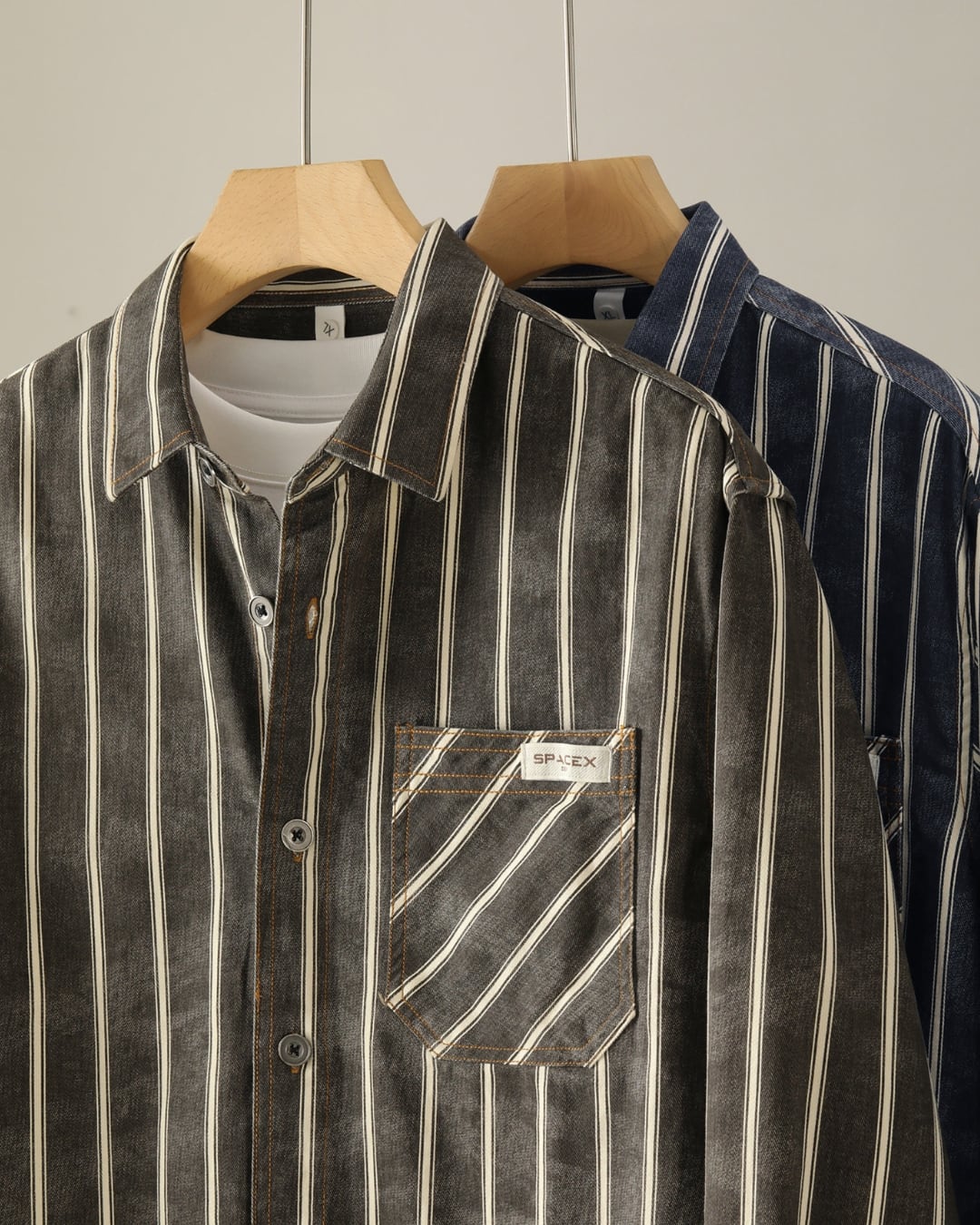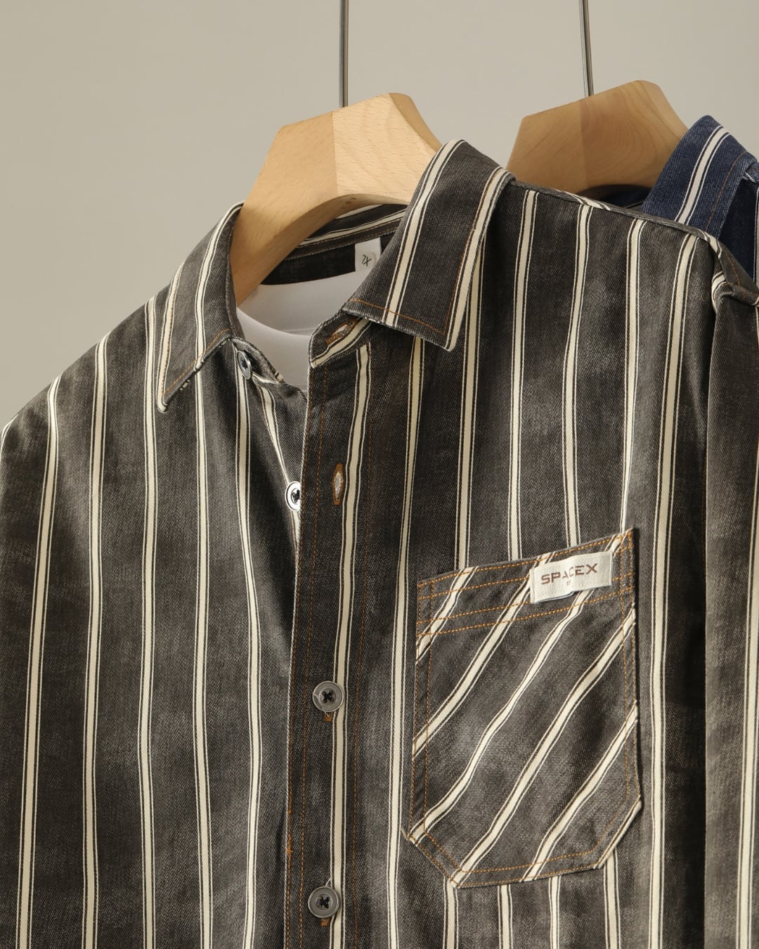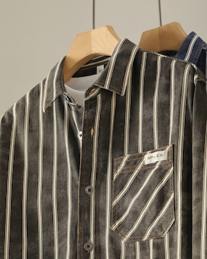 アーバン カジュアルストライプコットンシャツ 2色 A0160