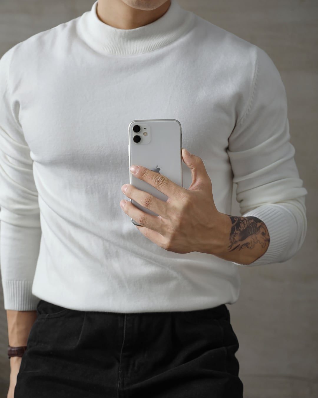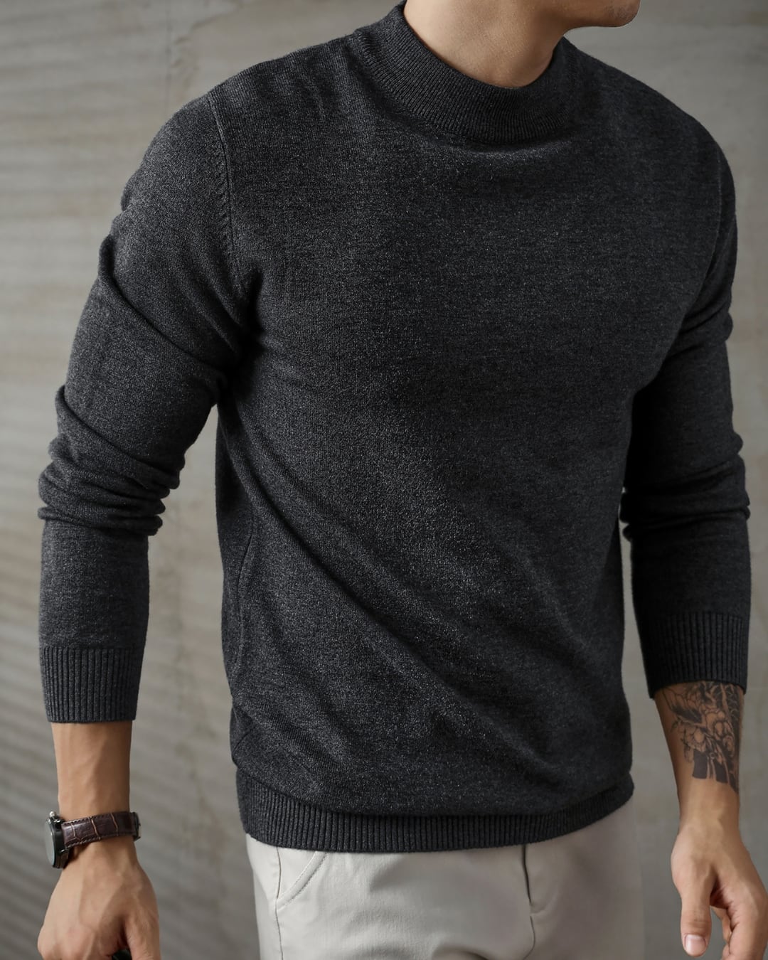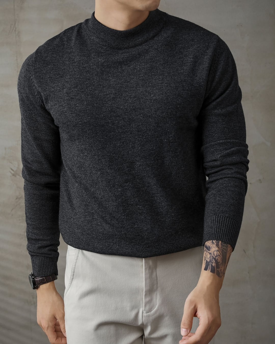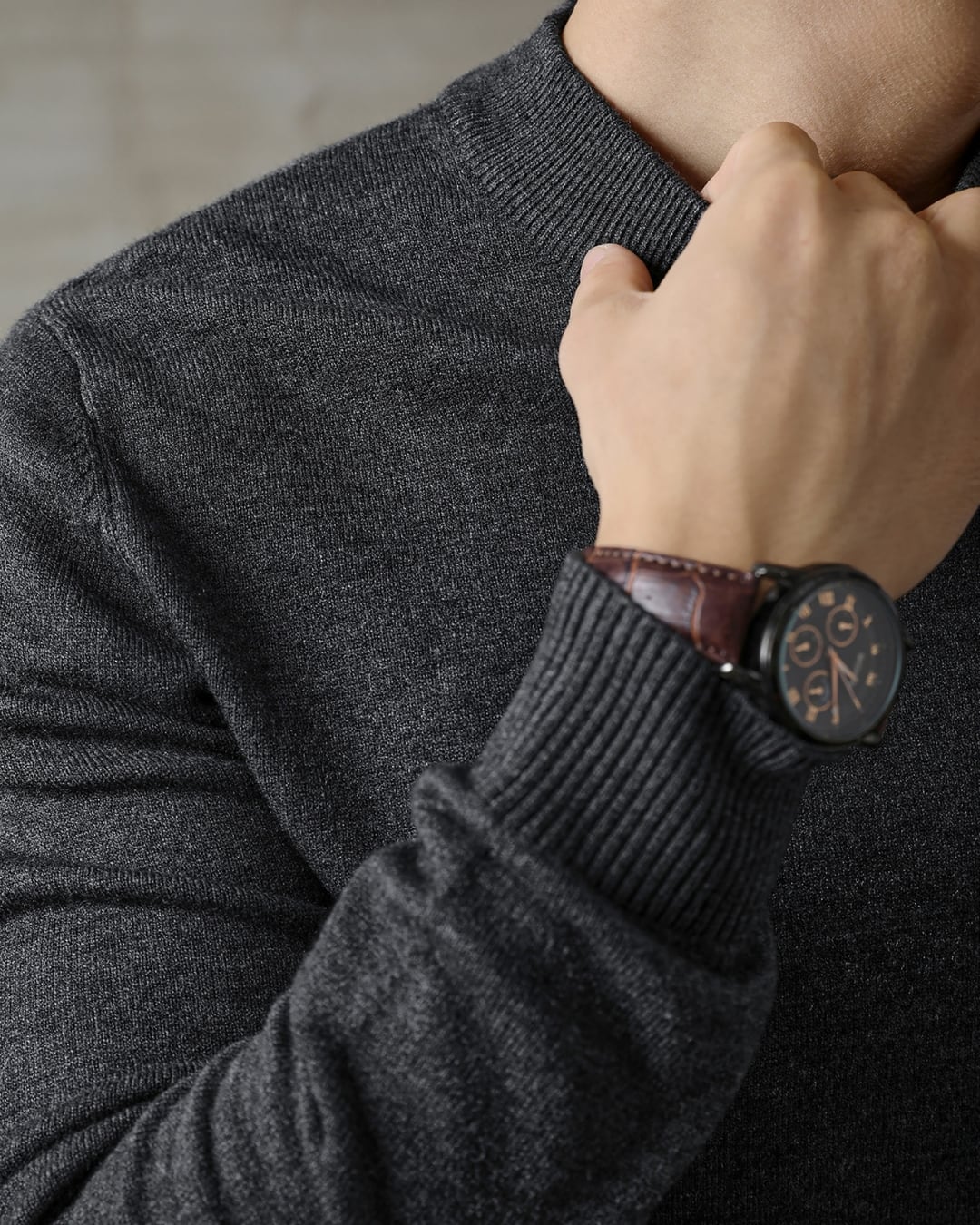 【首元をすっきり見せる、上品なモックネックデザイン】