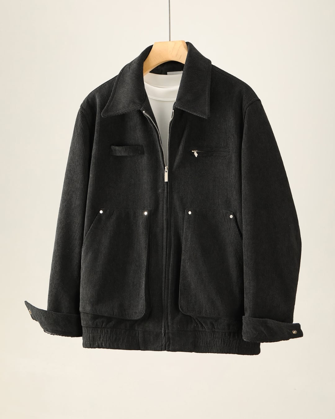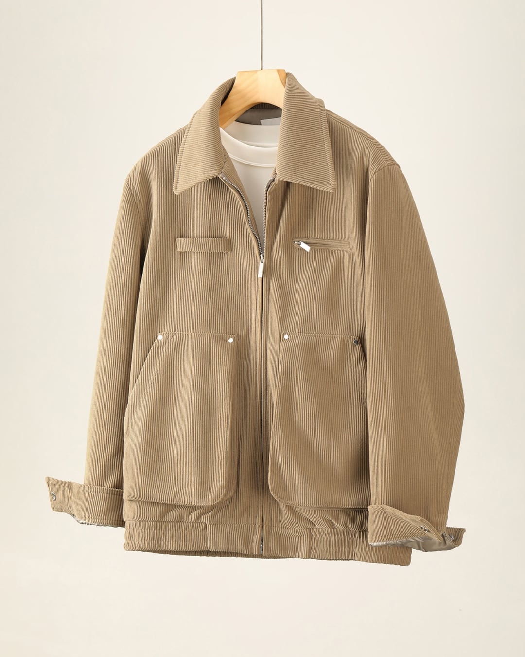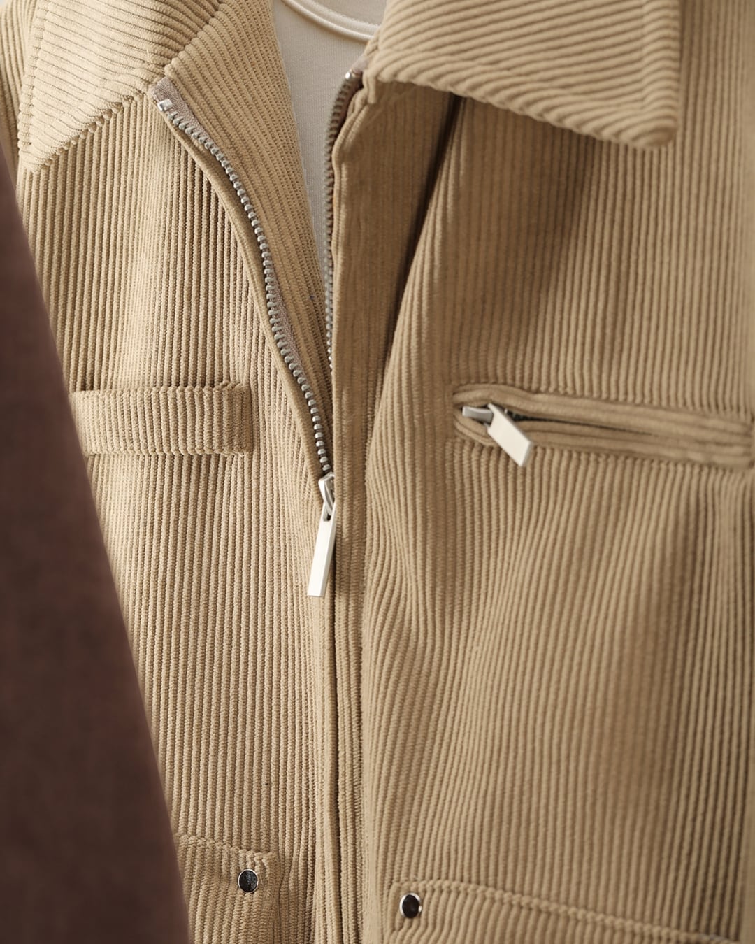 【上品な表情をまとった、襟付きコーデュロイジップジャケット】