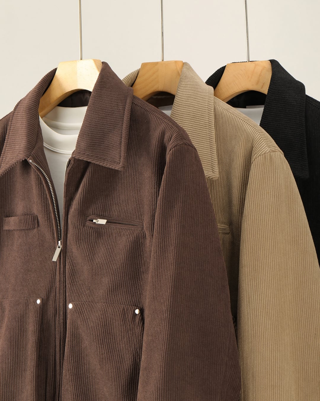 クラシック 襟付きジップコーデュロイジャケット 3色 A0174