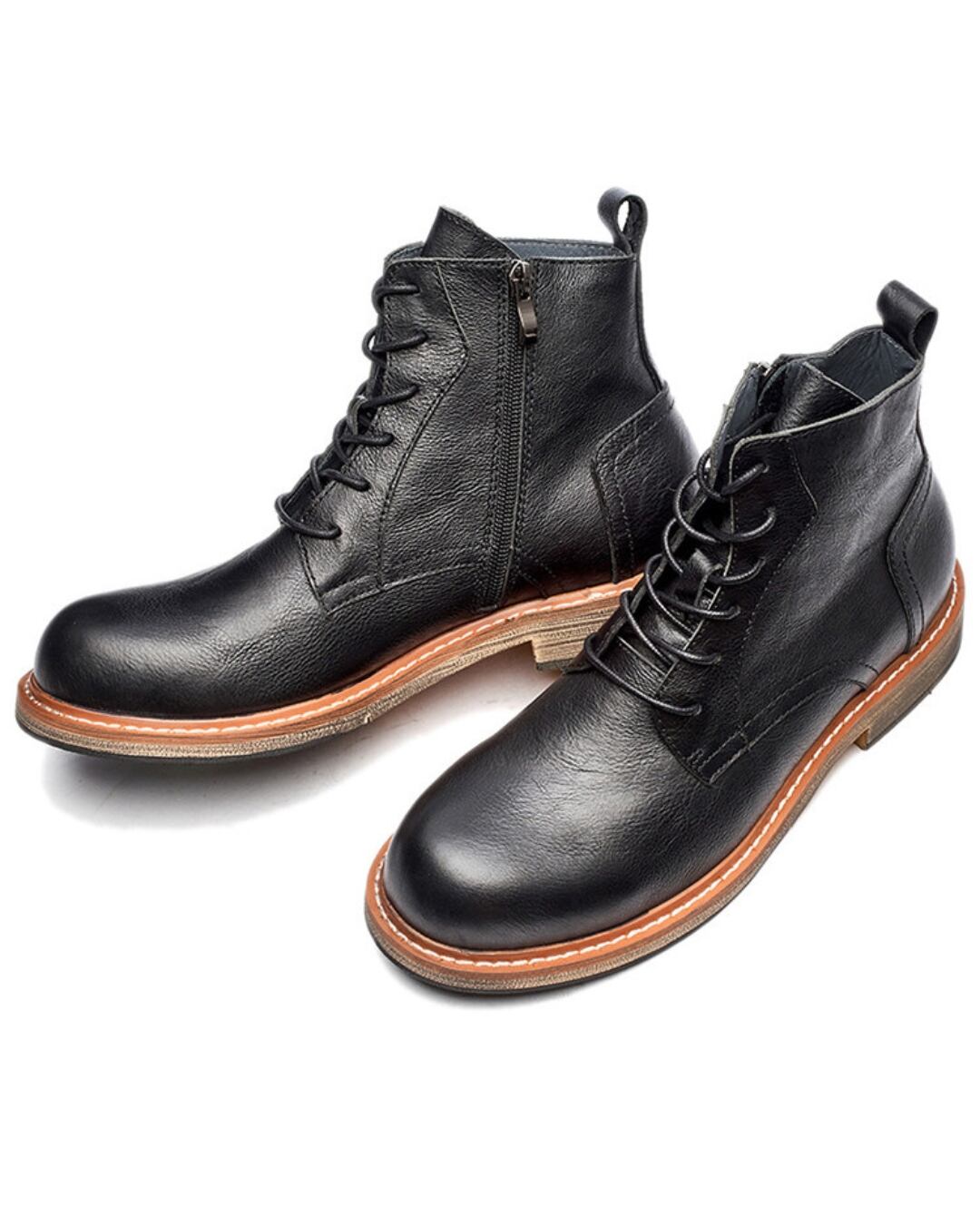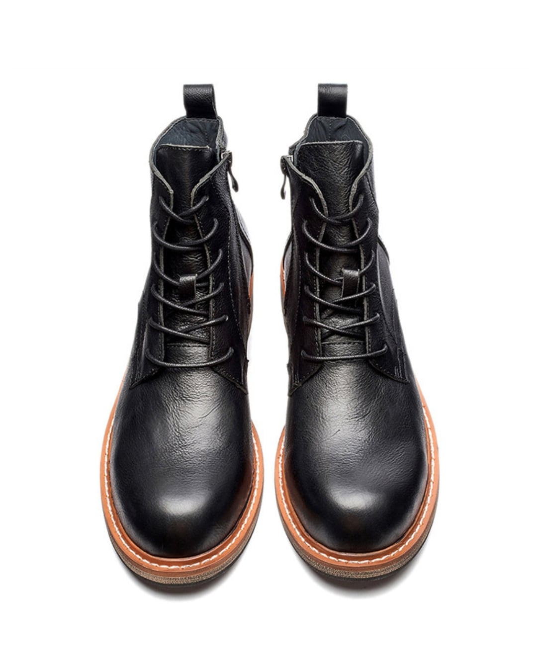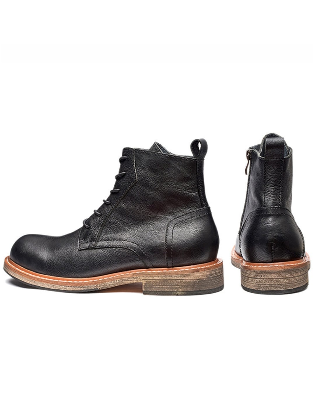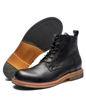 レースアップ サイドジップレザーブーツ 2色 A0175