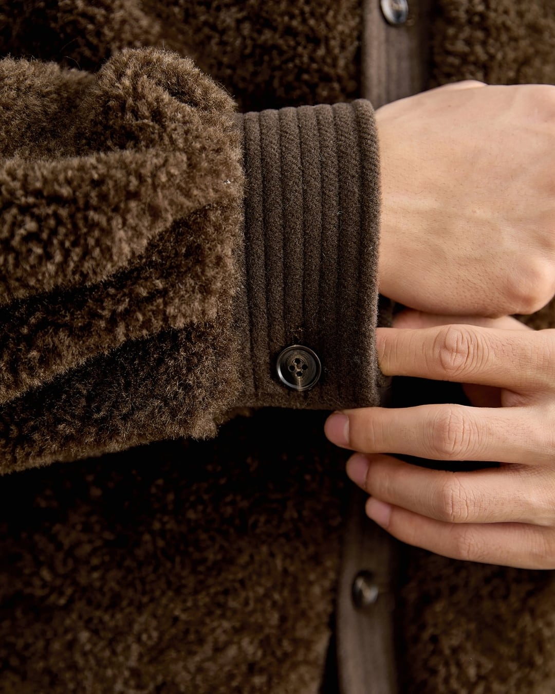 首元はスタンドネック仕様で、すっきりとした印象を保ちながら防寒性も確保。