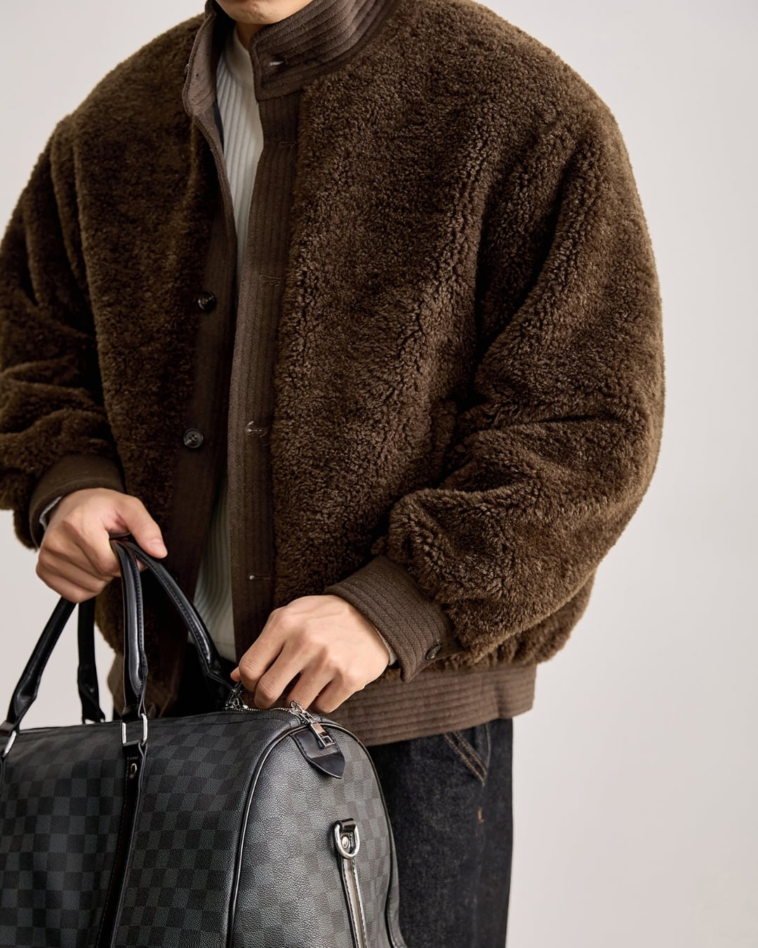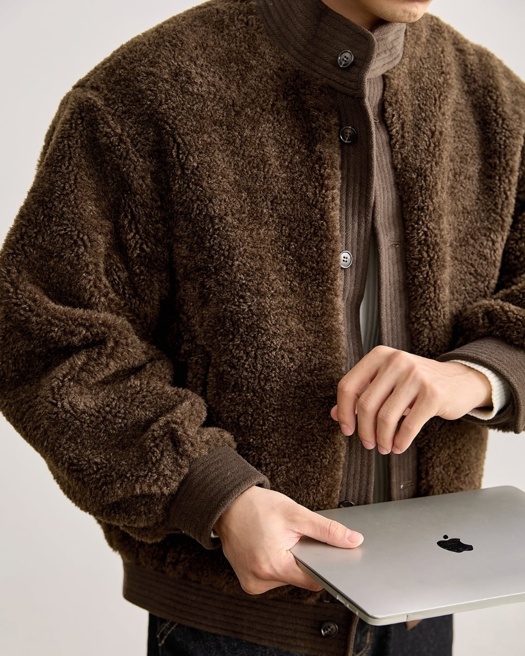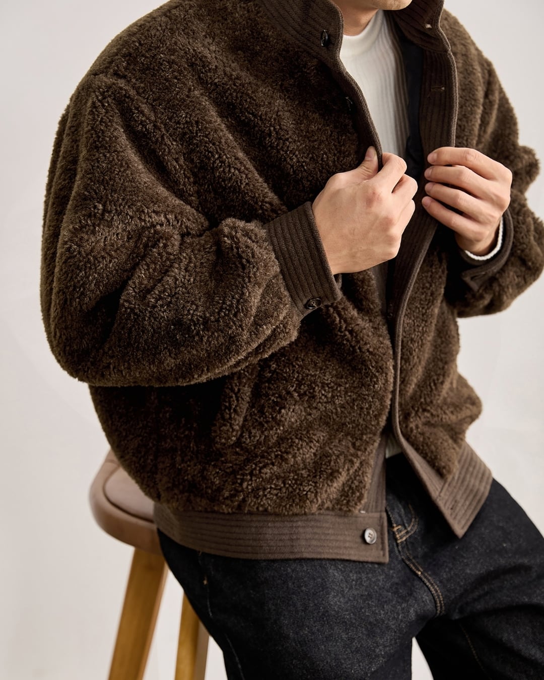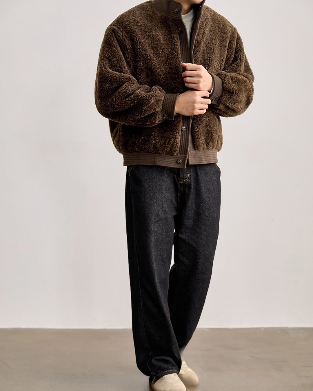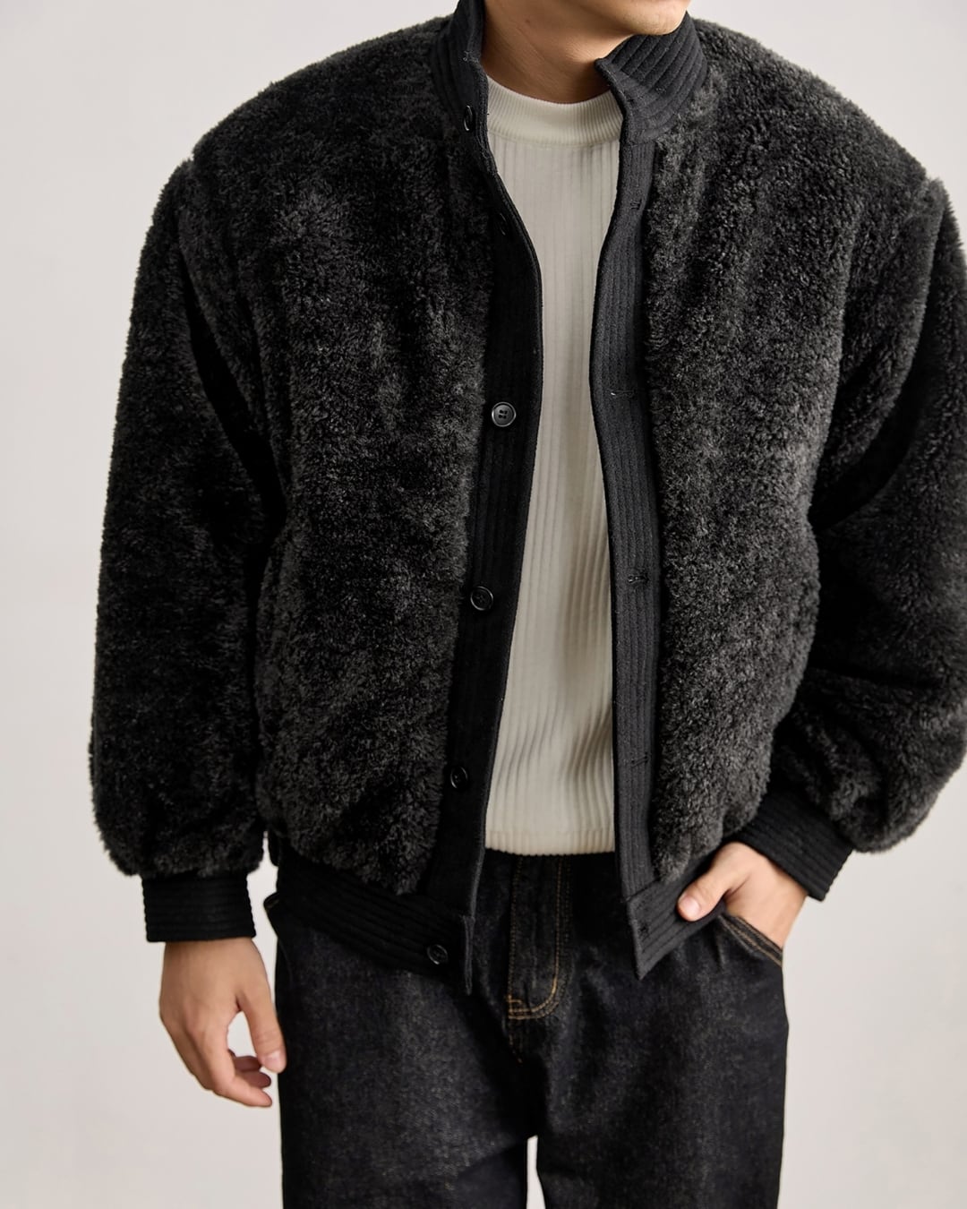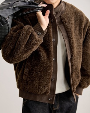 テクスチャーボア スタンドネックジャケット 3色 A0181