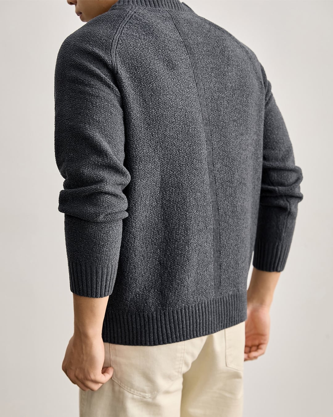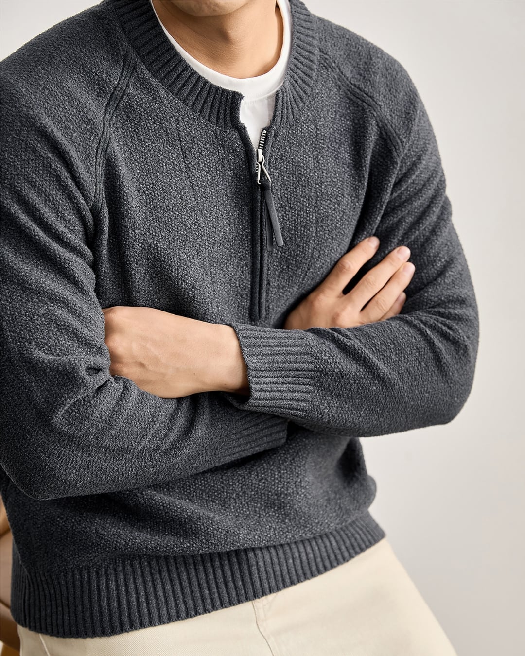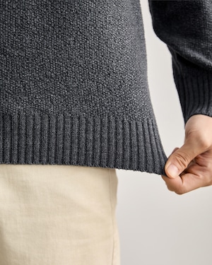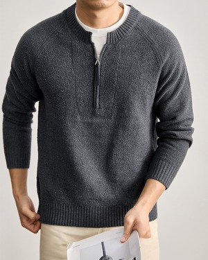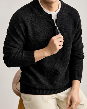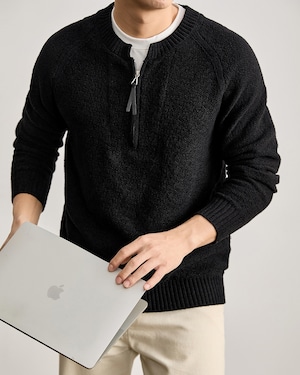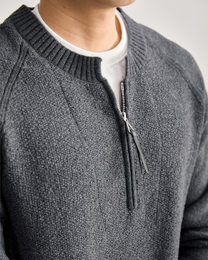 【重ね着風デザインで奥行きのある表情をつくる、フェイク2ピース仕様のハーフジップニット】