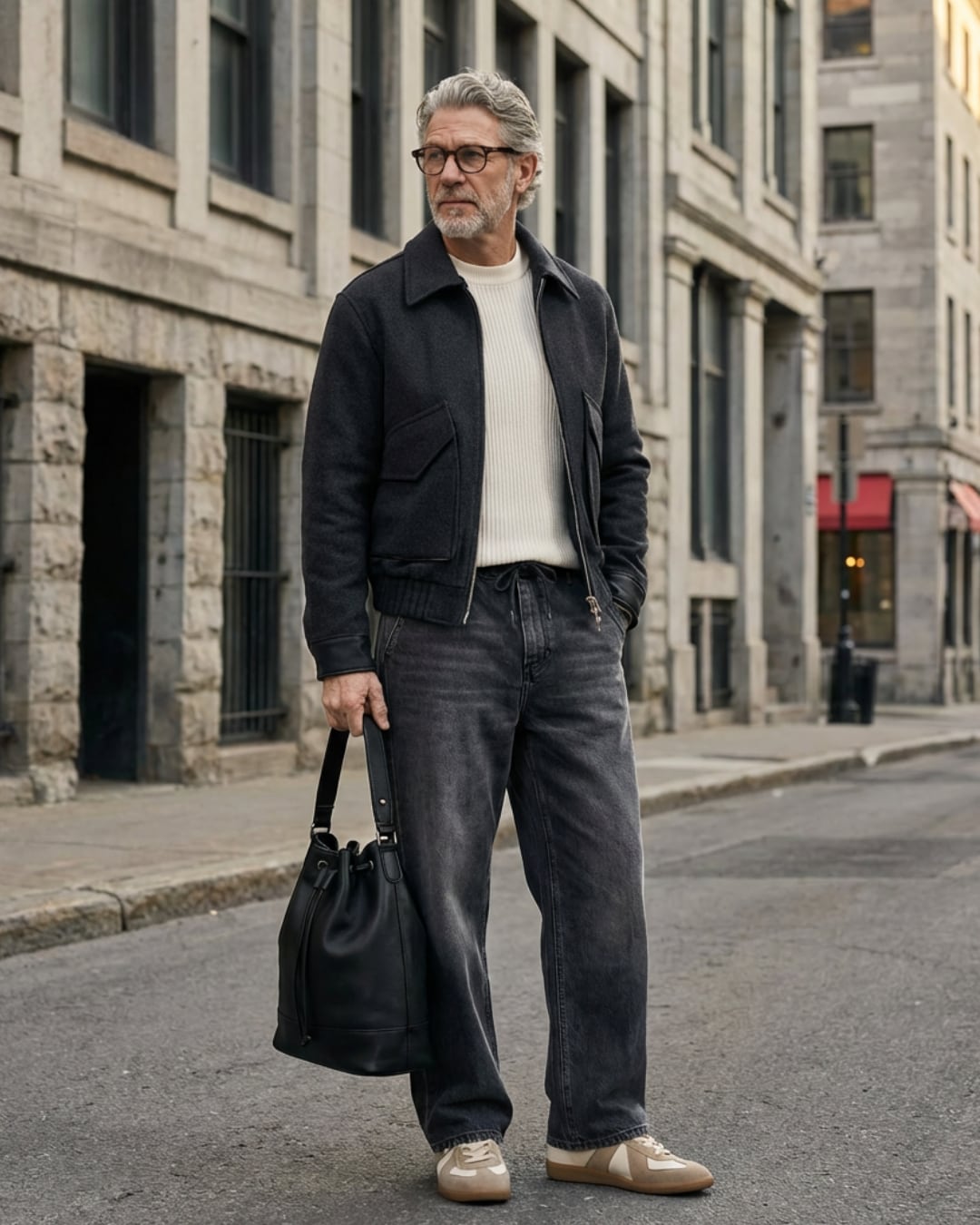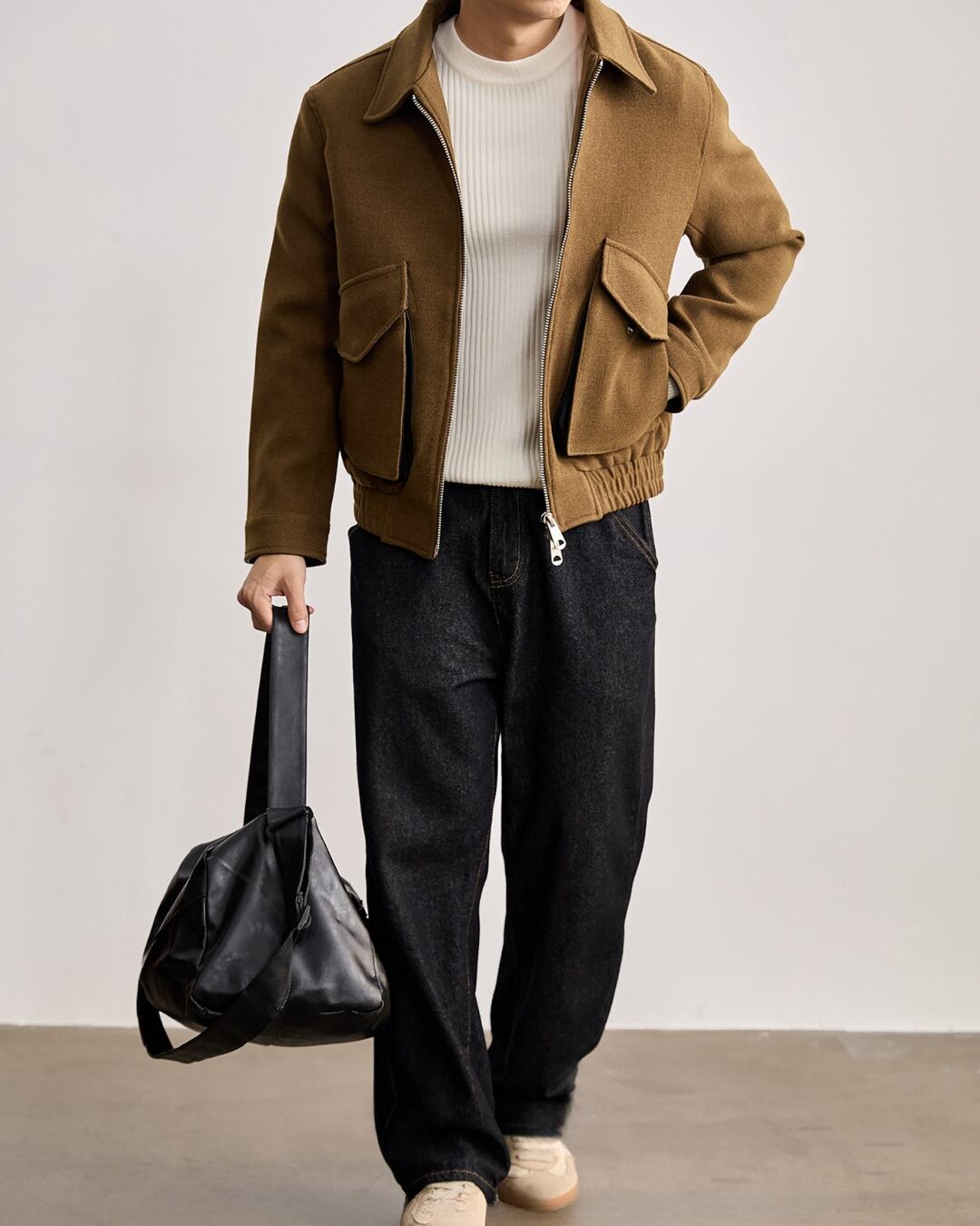フラップポケットがさりげないアクセントになり、全体のバランスを引き締めます。