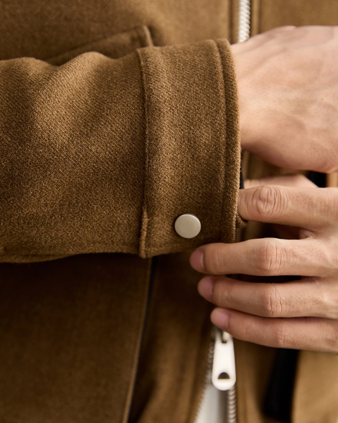 襟付きデザインとフロントジップ仕様で、きれいめにもカジュアルにも対応。