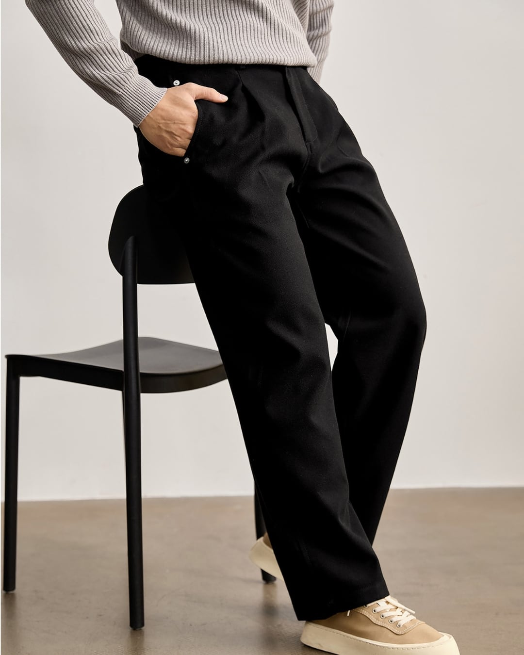 【上品な起毛感が大人の余裕を演出する、クラシックタックパンツ】