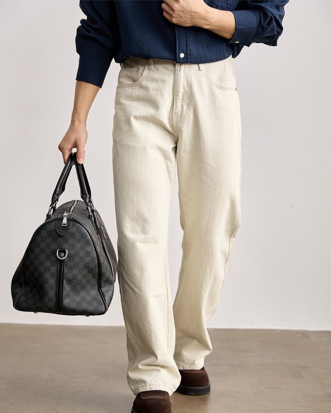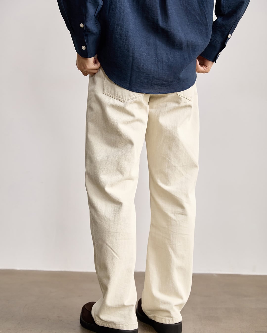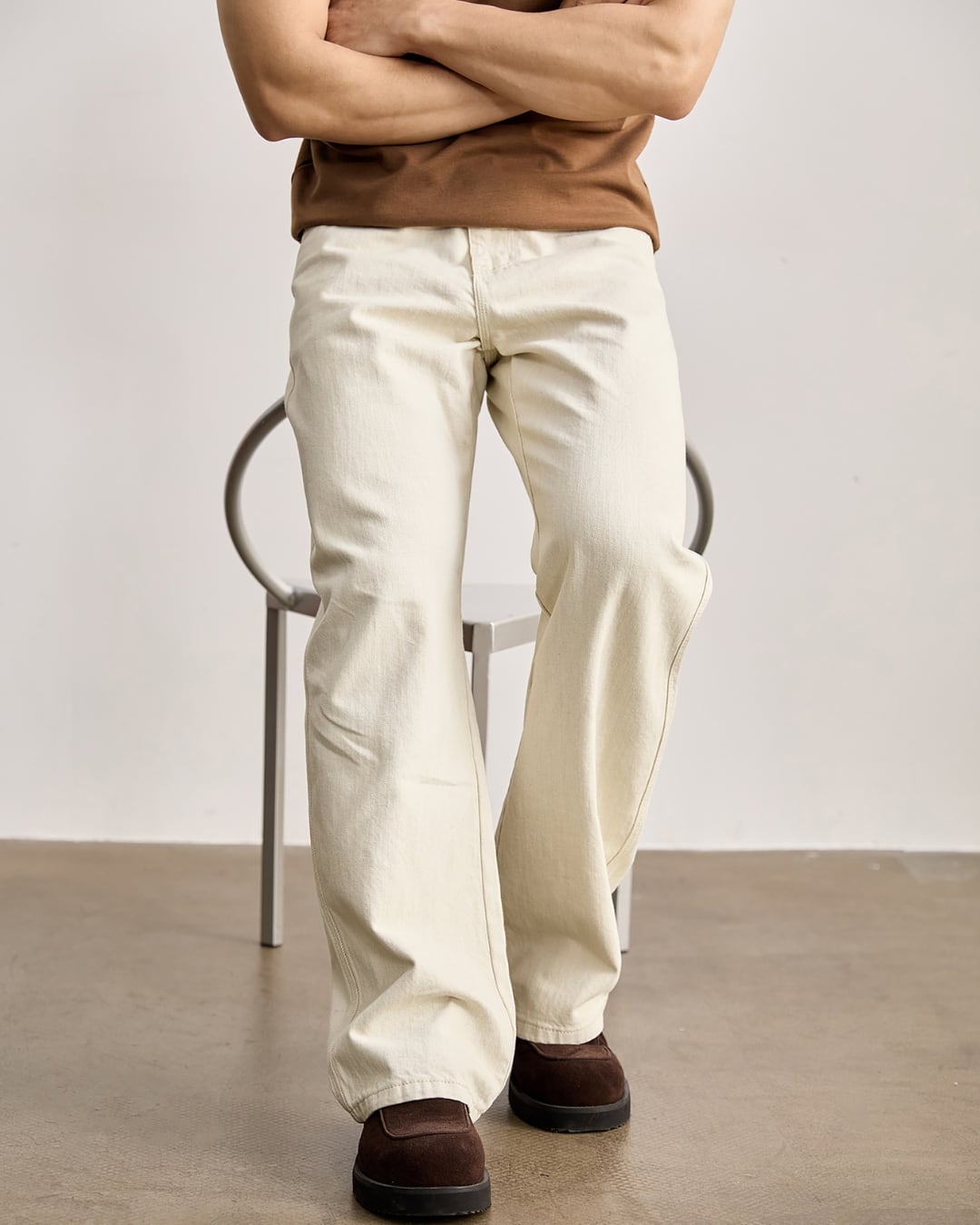綿素材ならではのナチュラルな風合いと、すっきりとしたシルエットを両立した一本。