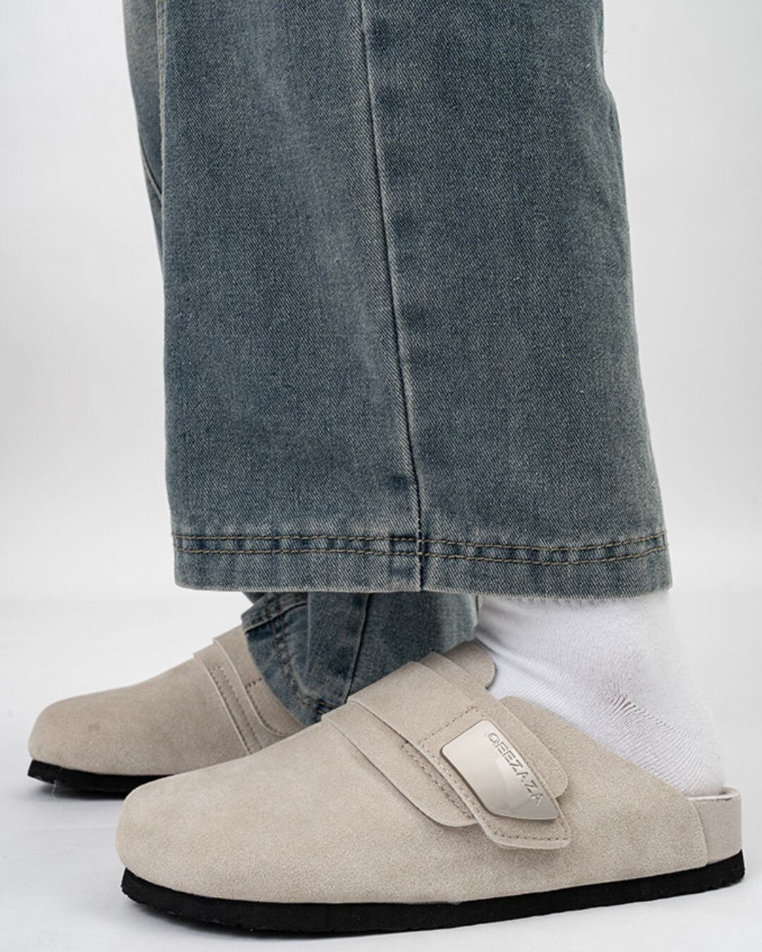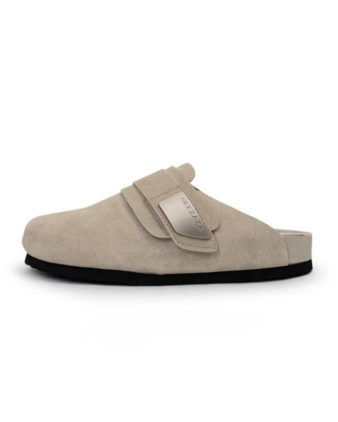 【上品な起毛感が足元に落ち着きを添える、バックルデザインのサボシューズ】