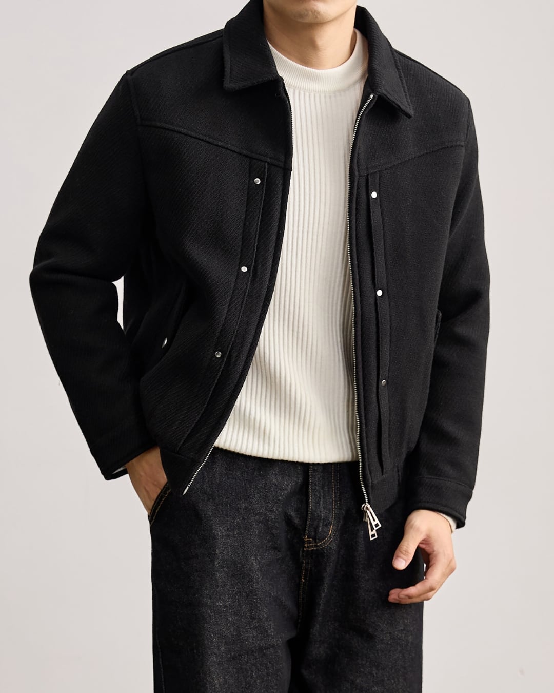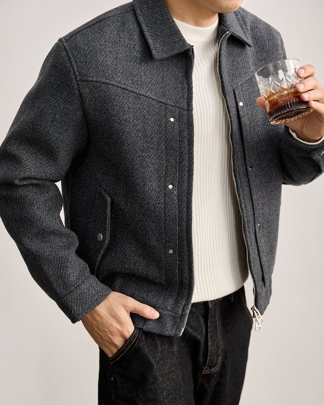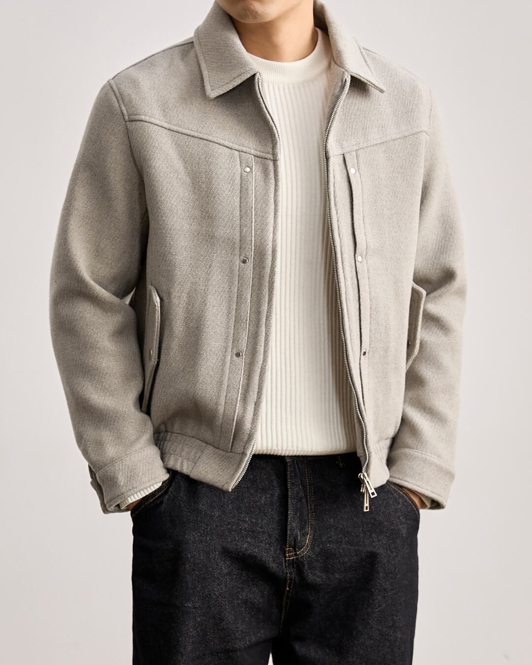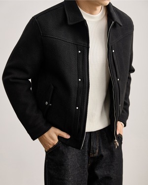 【上品な表情と軽い着心地を両立した、ウール混ジップブルゾン】