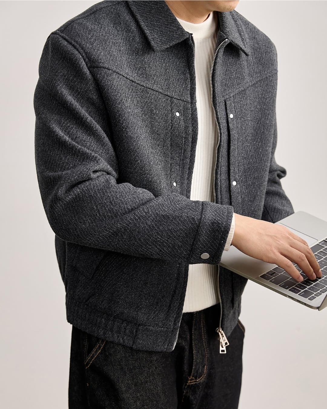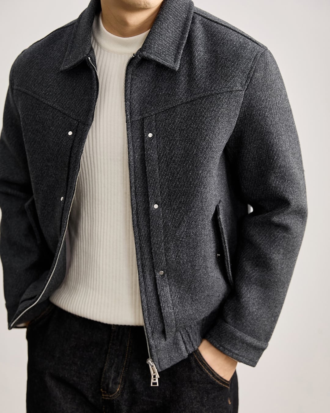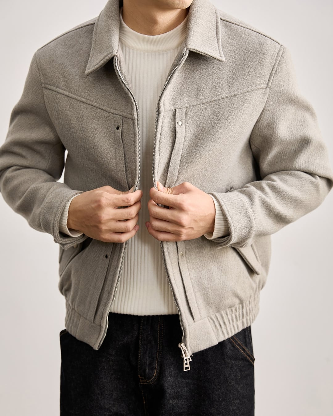 【上品な表情と軽い着心地を両立した、ウール混ジップブルゾン】