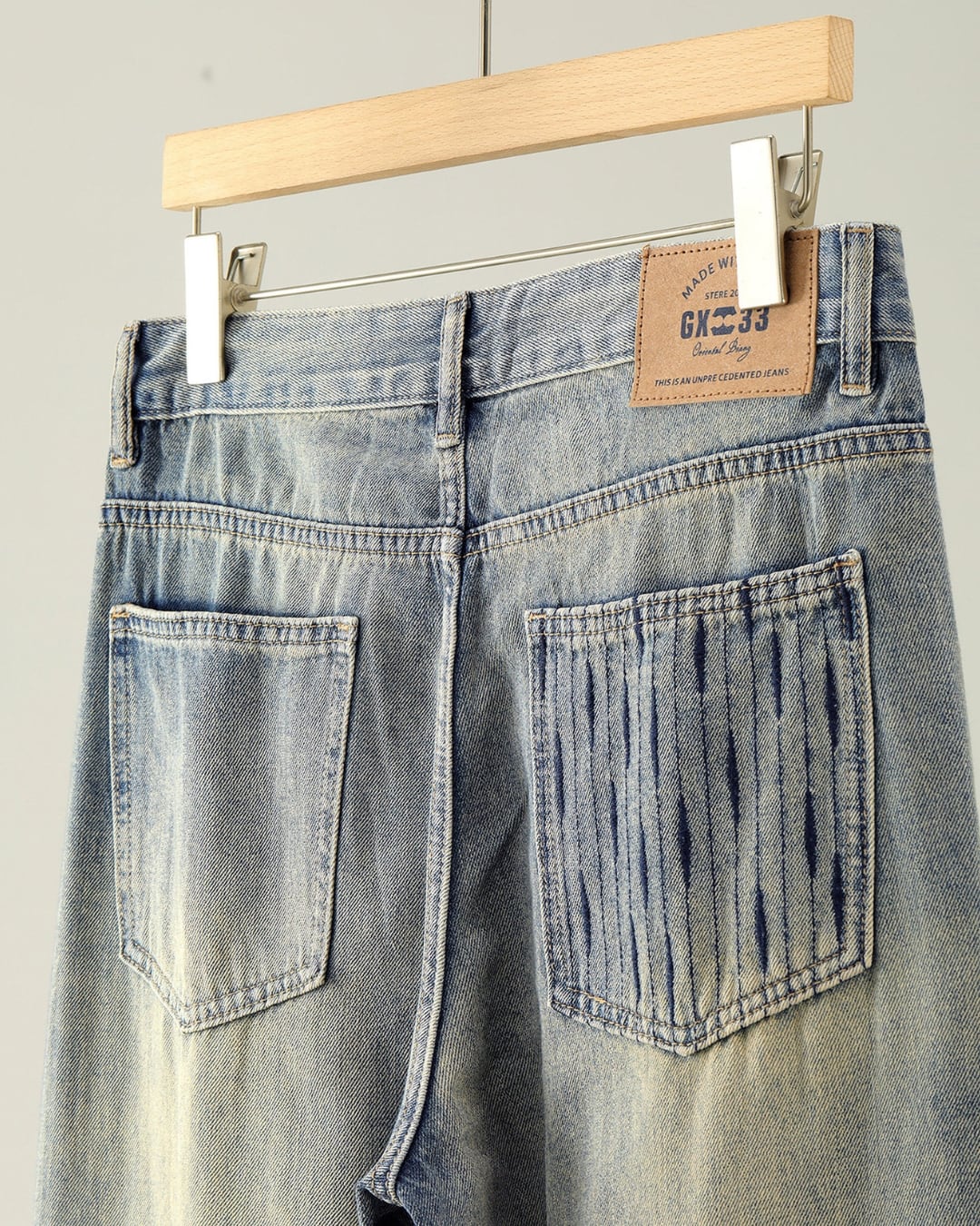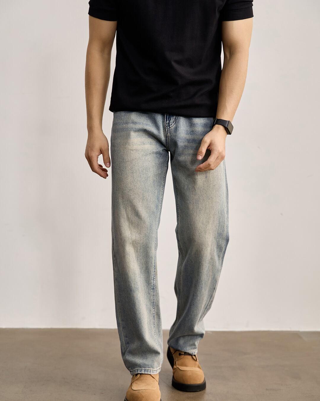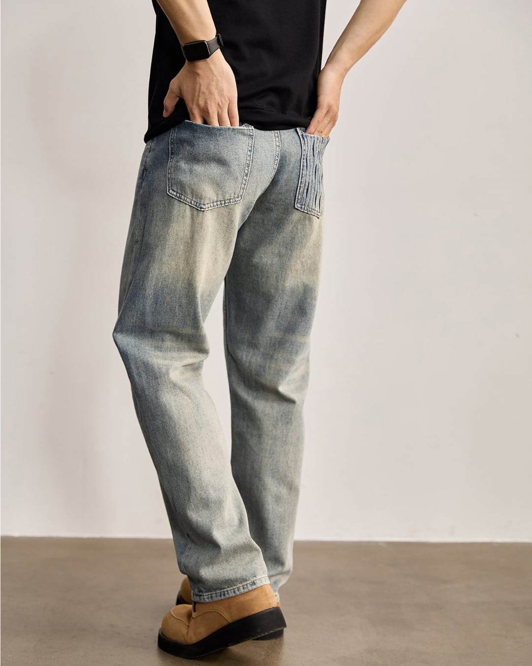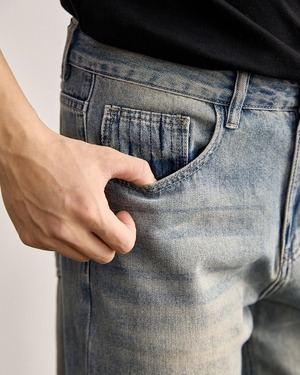 ヴィンテージ加工 ストレートデニムパンツ A0205