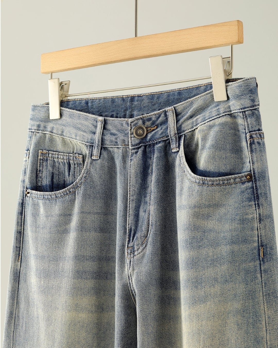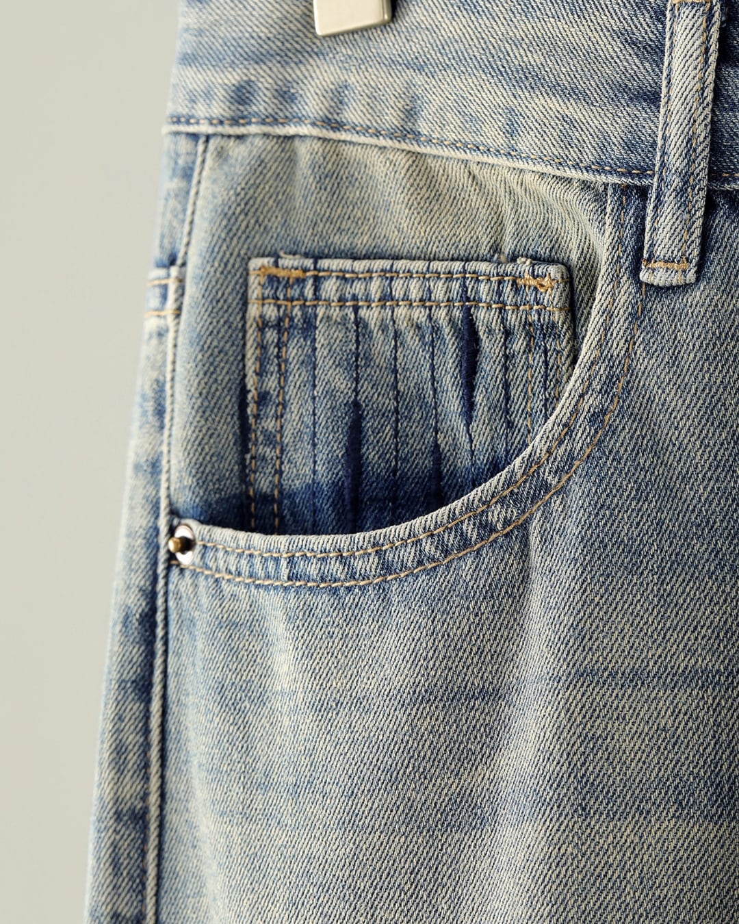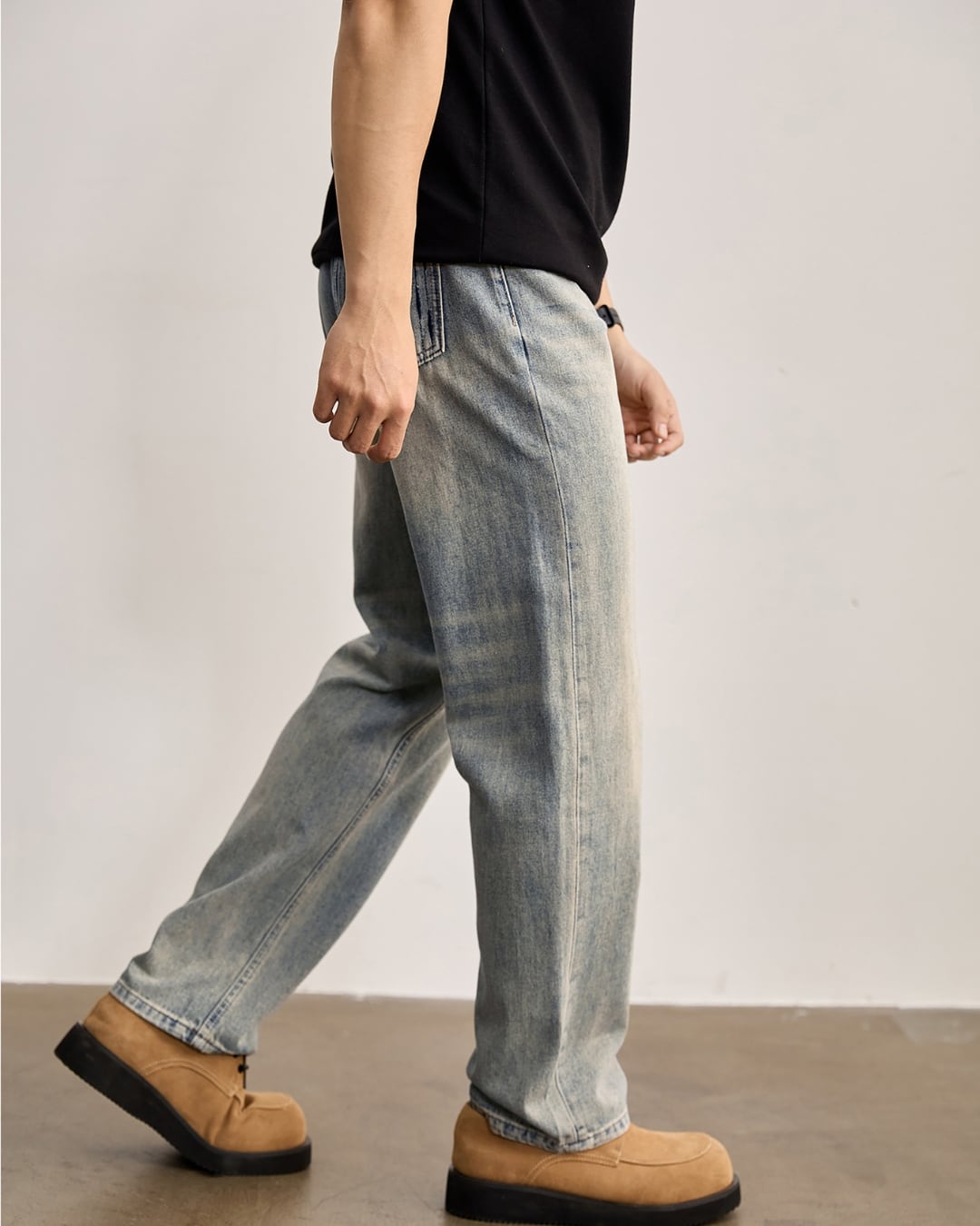 ヴィンテージ加工 ストレートデニムパンツ A0205
