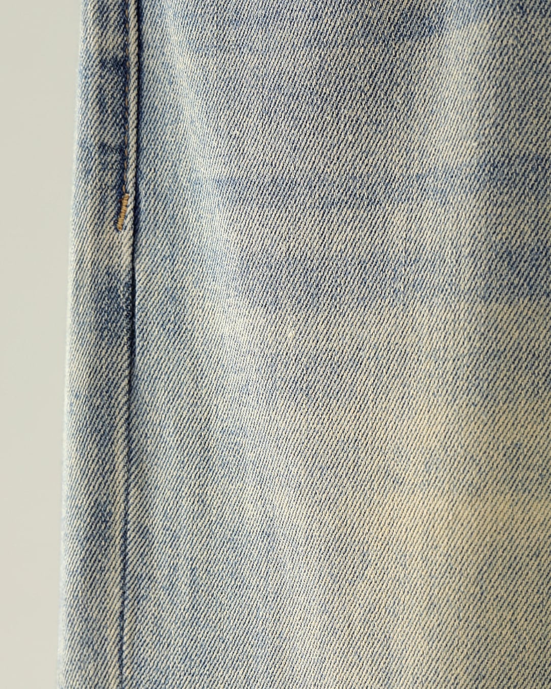 程よくフェードしたウォッシュ加工が、こなれた雰囲気をつくる一本。やりすぎない色落ちなので、カジュアルでもきれいめ寄りでも使いやすいバランスです。