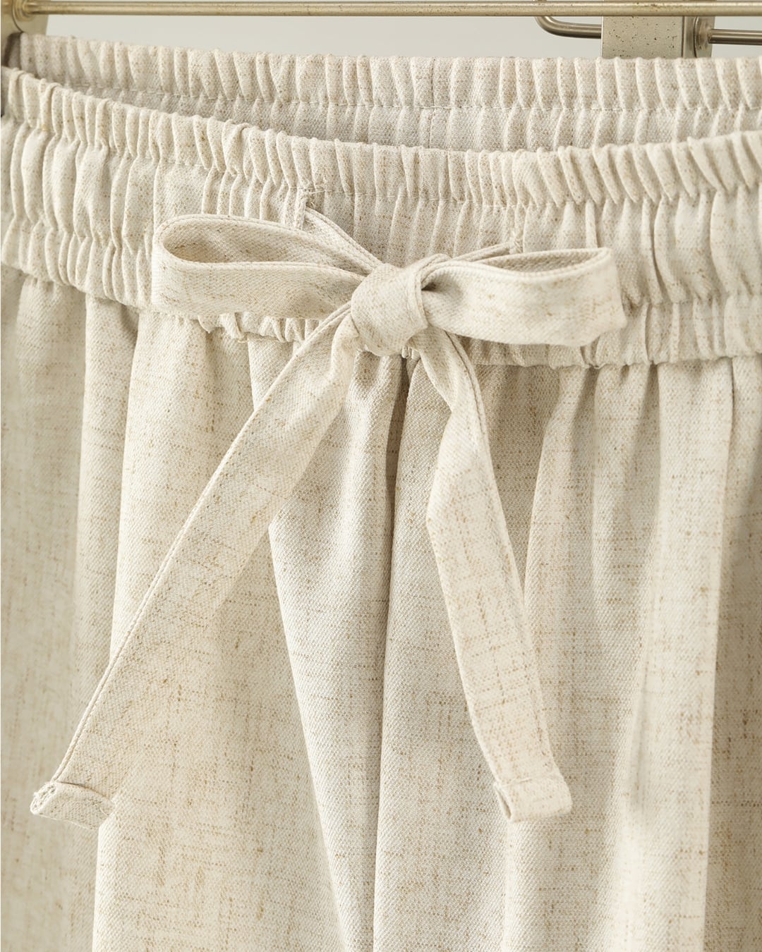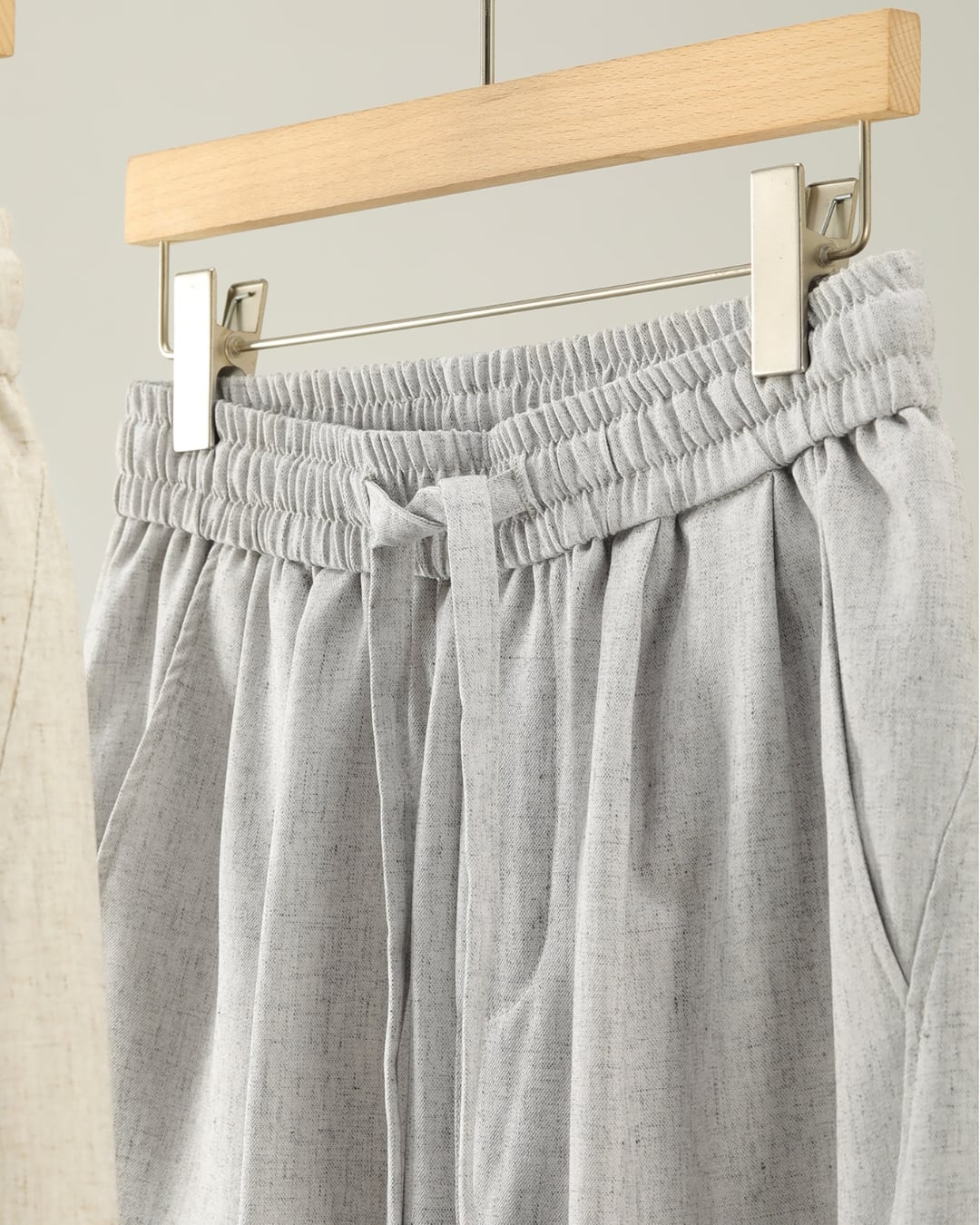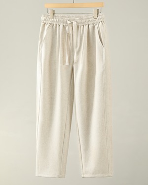 リネン混素材ならではのナチュラルな風合いが魅力の、リラックス感あるイージースラックスです。
