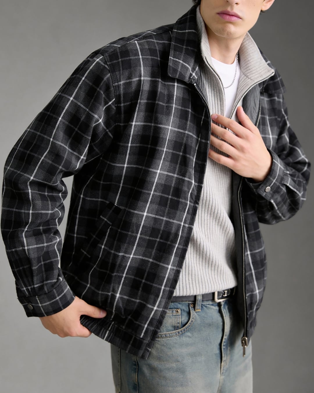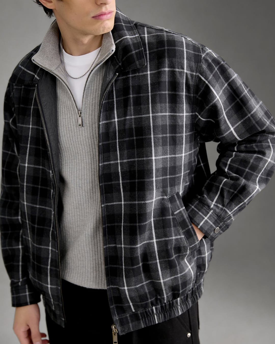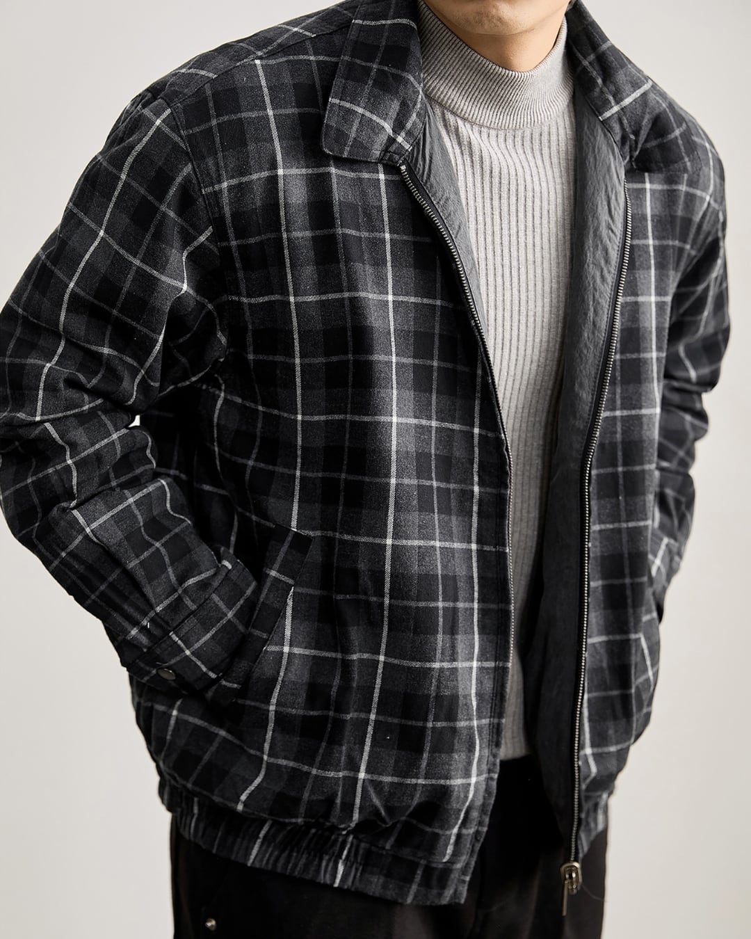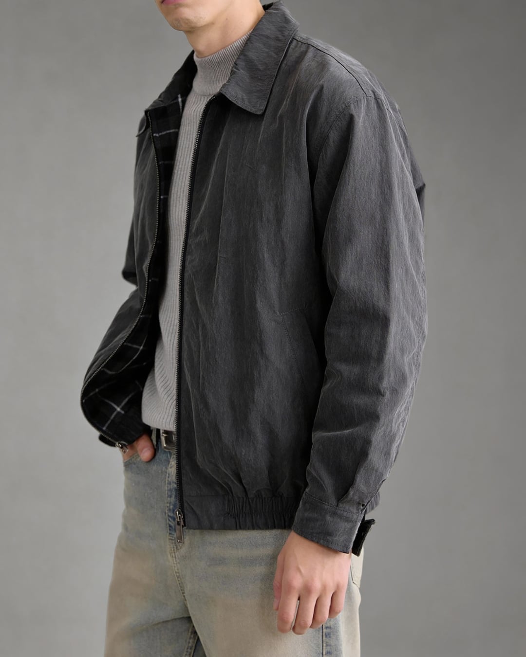 リバーシブル チェック×無地スタンドカラージップジャケット A0210