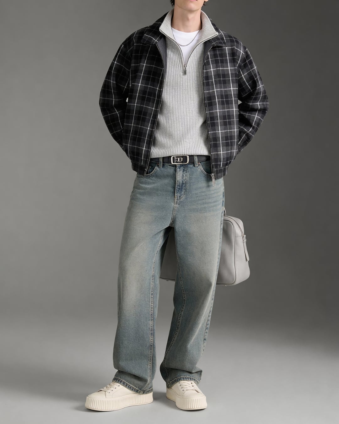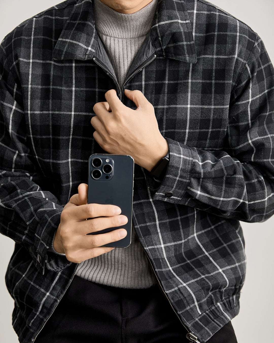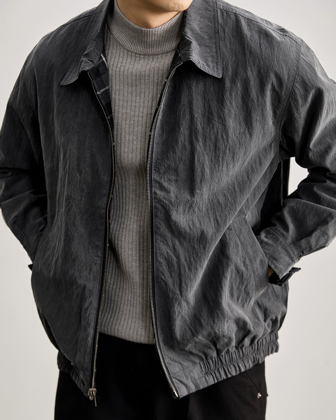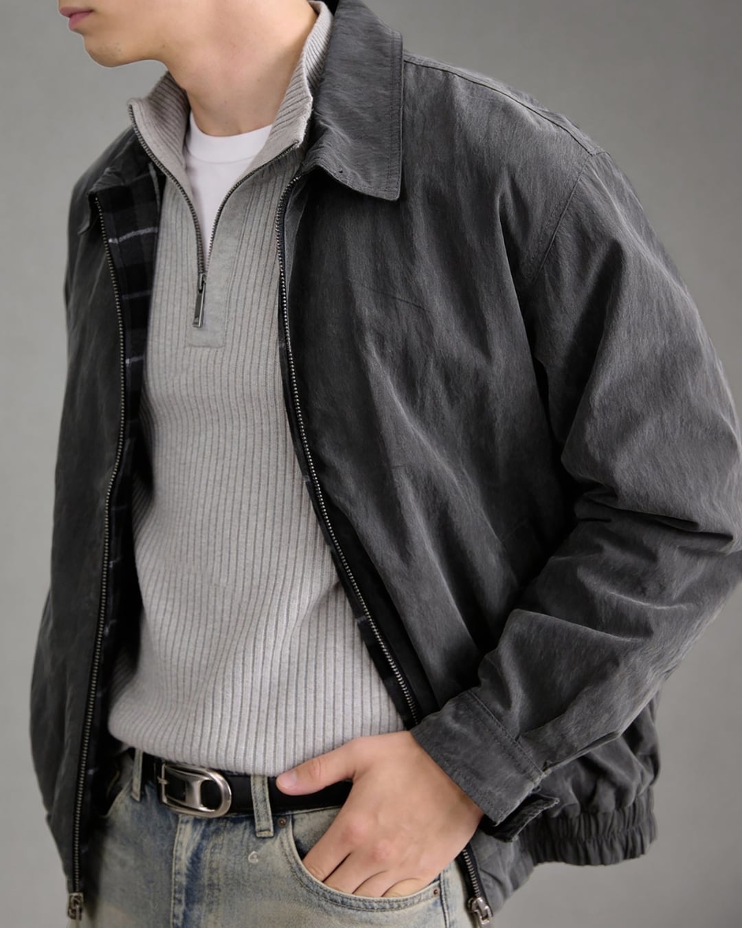 リバーシブル チェック×無地スタンドカラージップジャケット A0210