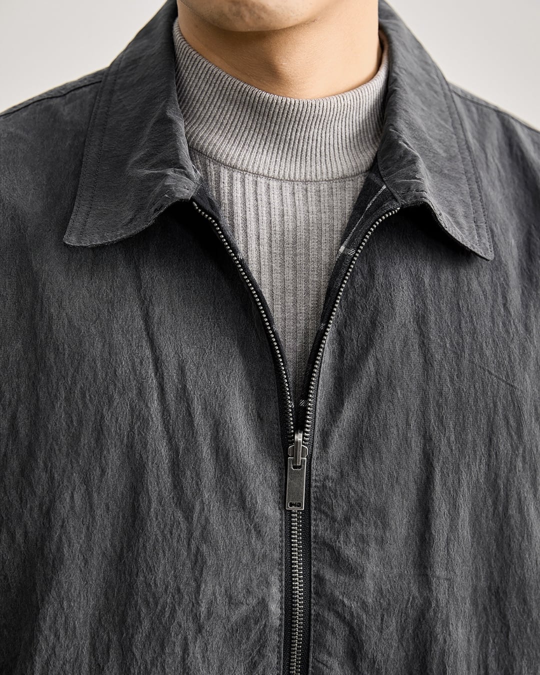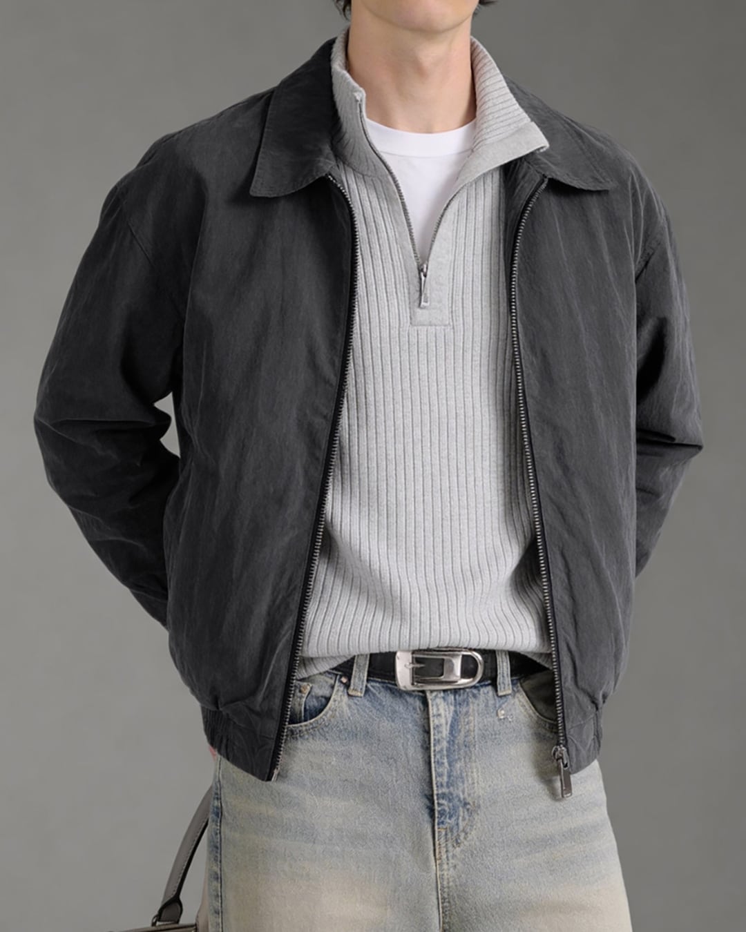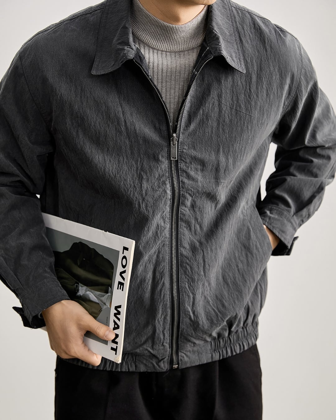 スタンドカラーとジップデザインが、すっきりとした大人のカジュアル感を演出します。