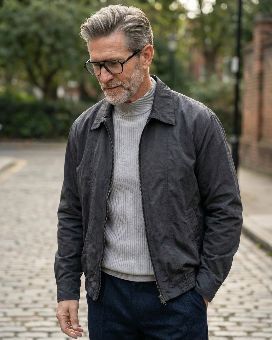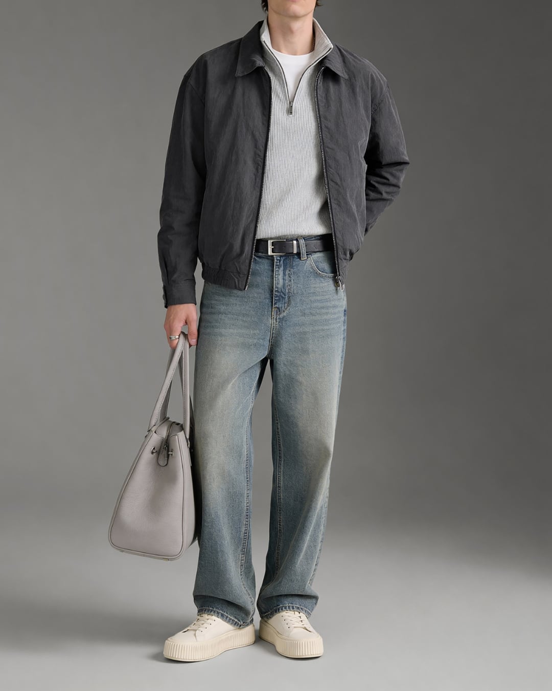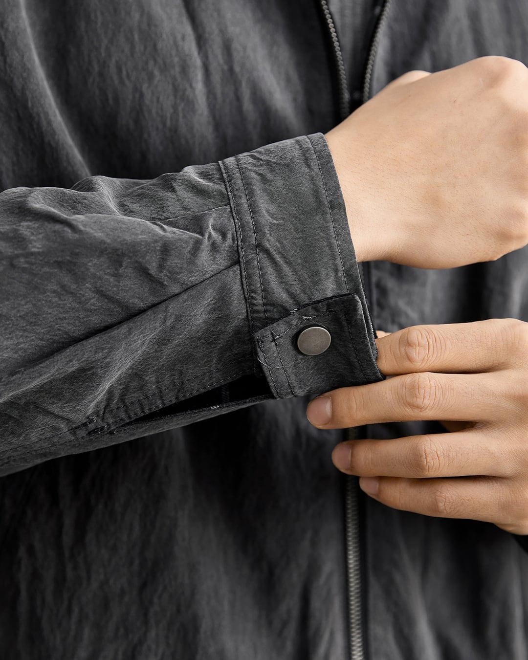 スタンドカラーとジップデザインが、すっきりとした大人のカジュアル感を演出します。