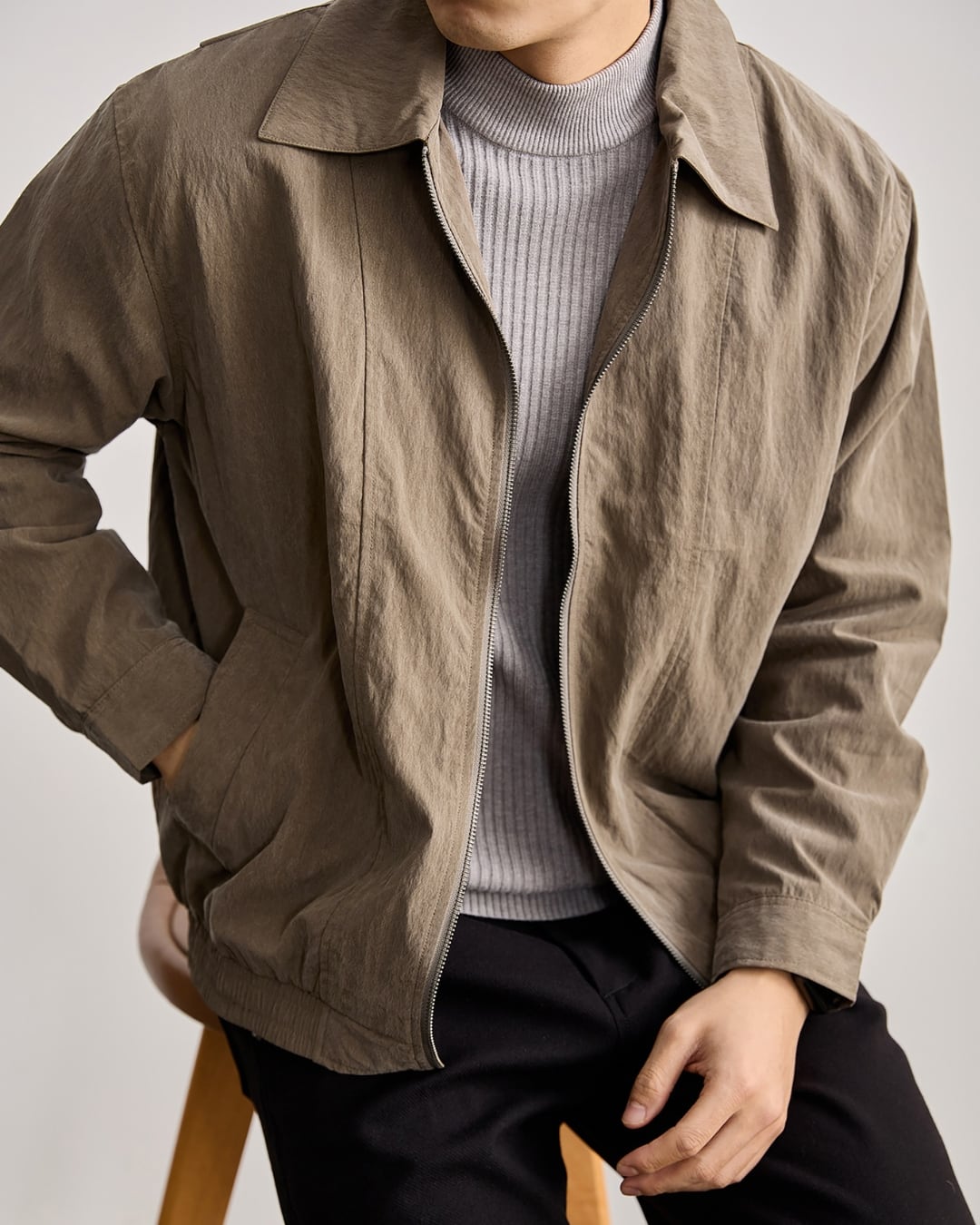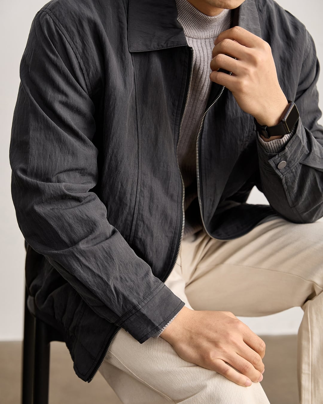 【リヨセル混のしなやかな風合いが、大人の余裕を感じさせるジップアップジャケット】