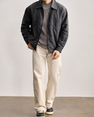 自然なシワ感とマットな表情が、シンプルながらも雰囲気のあるスタイルを演出します。