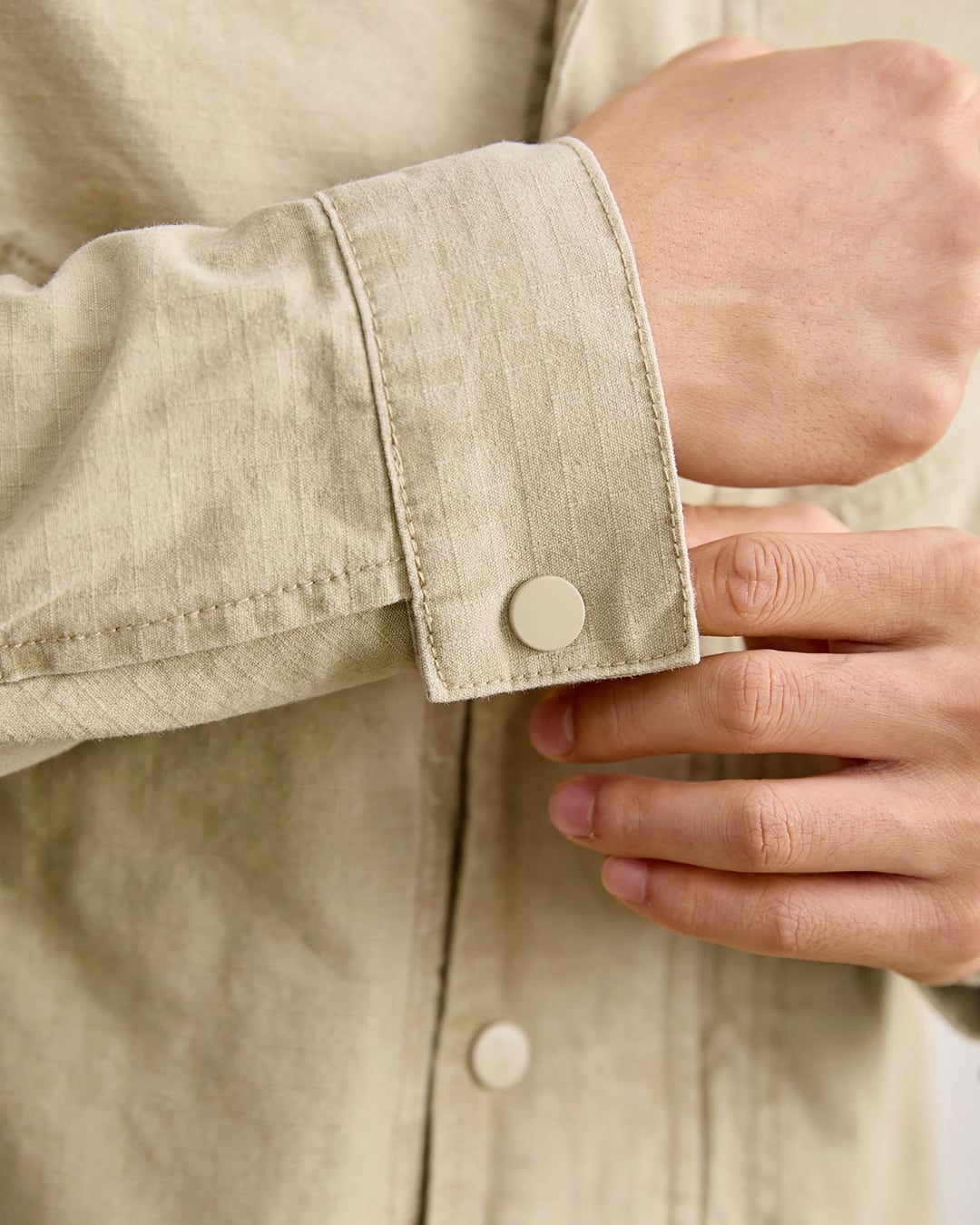 程よくハリのある生地感で、カジュアルすぎず大人のスタイリングにも自然に馴染みます。