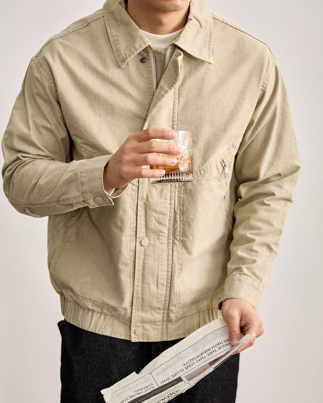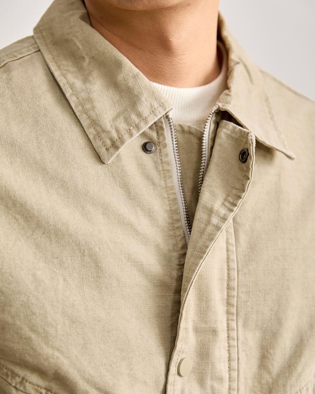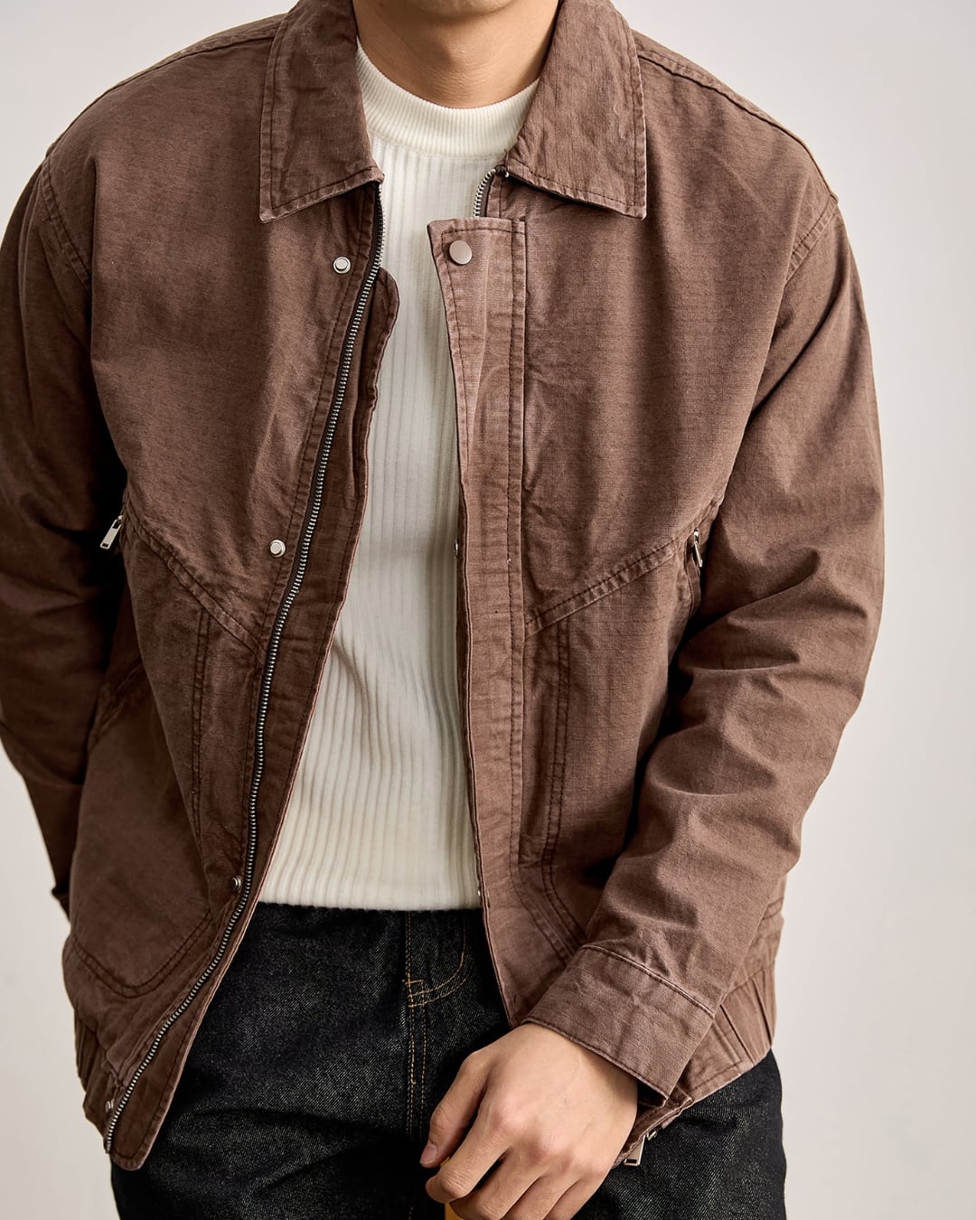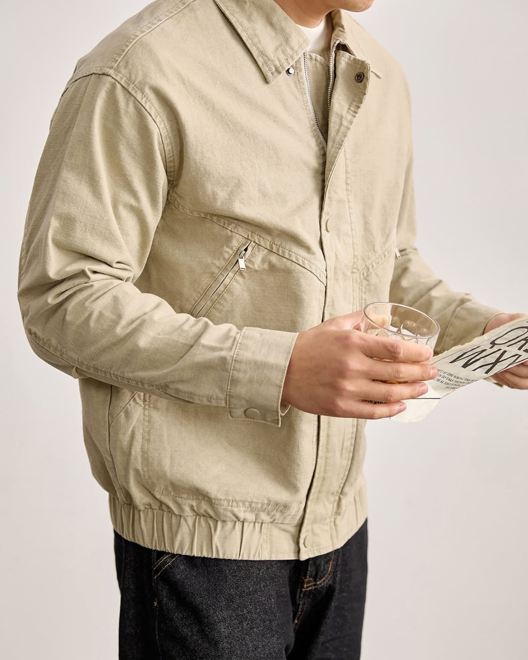 ナチュラルな風合いが魅力のコットン素材を使用したジップジャケット。
