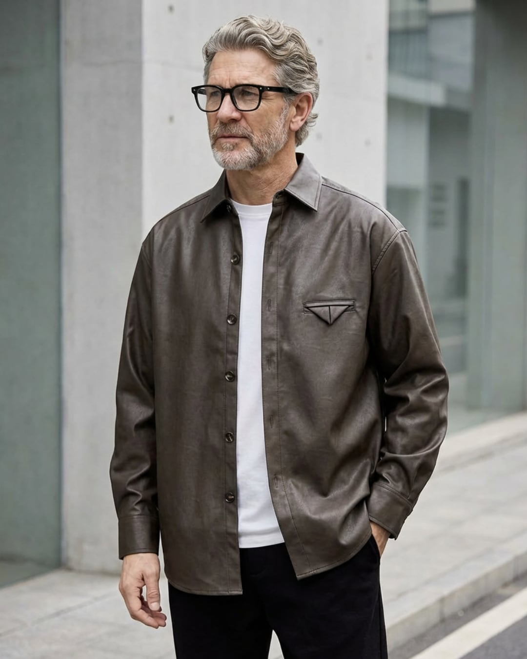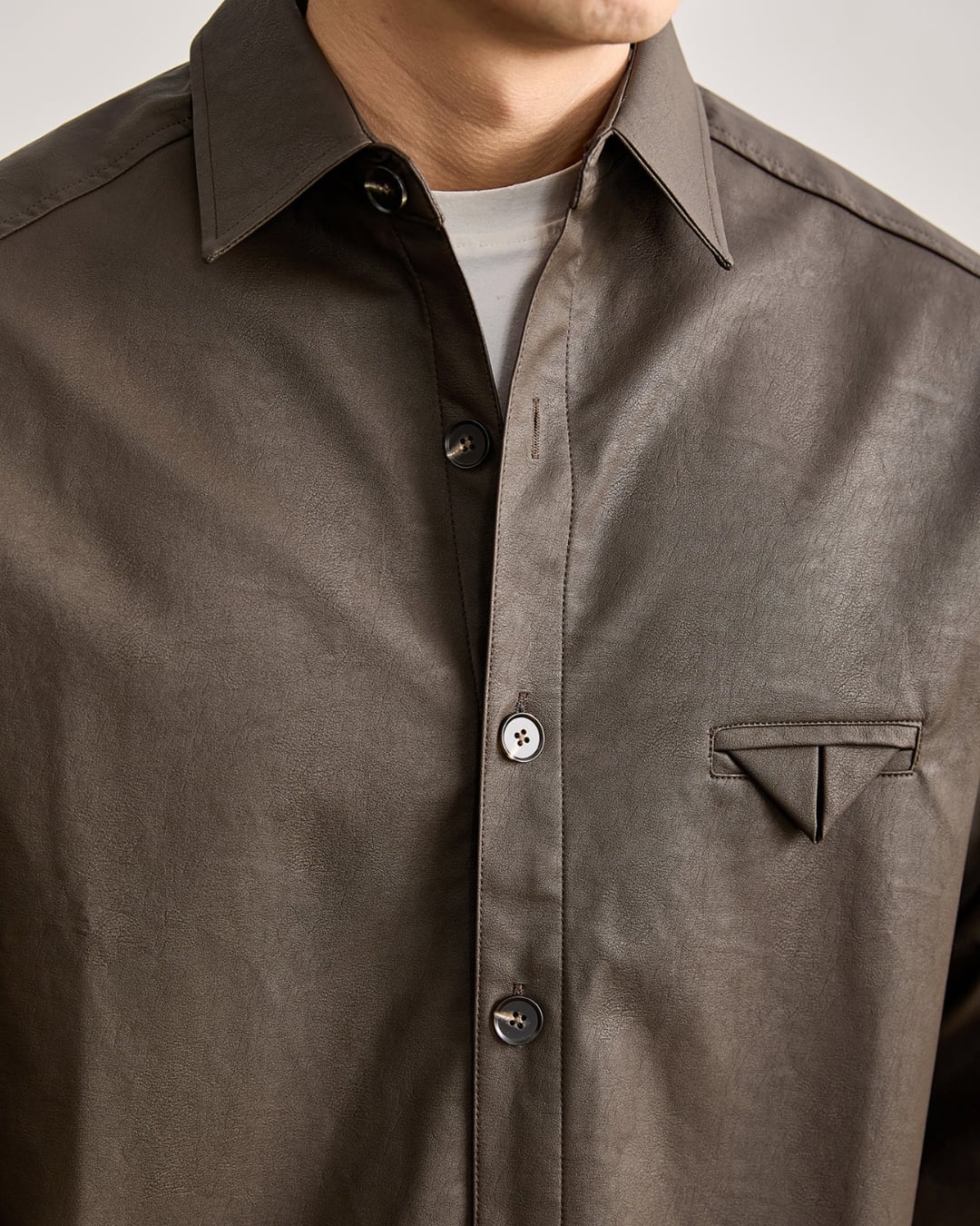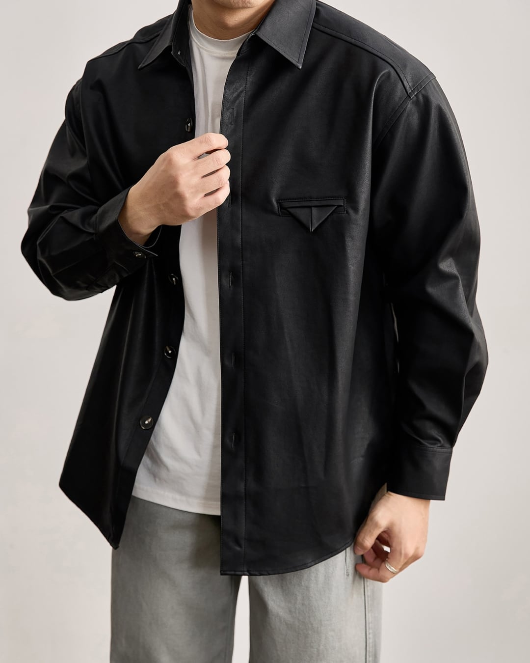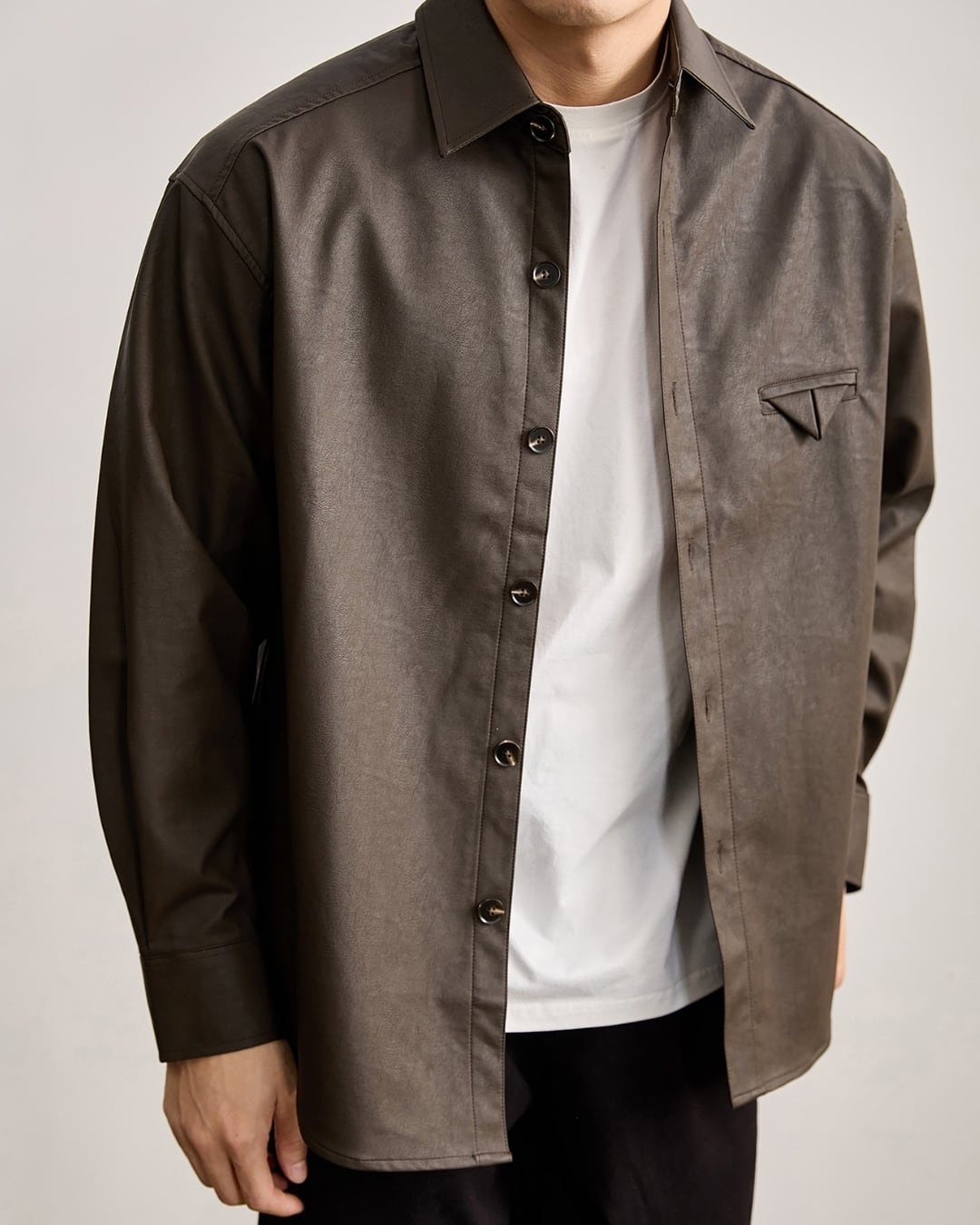 【マットな質感が映える、レザーライク素材のシャツジャケット】
