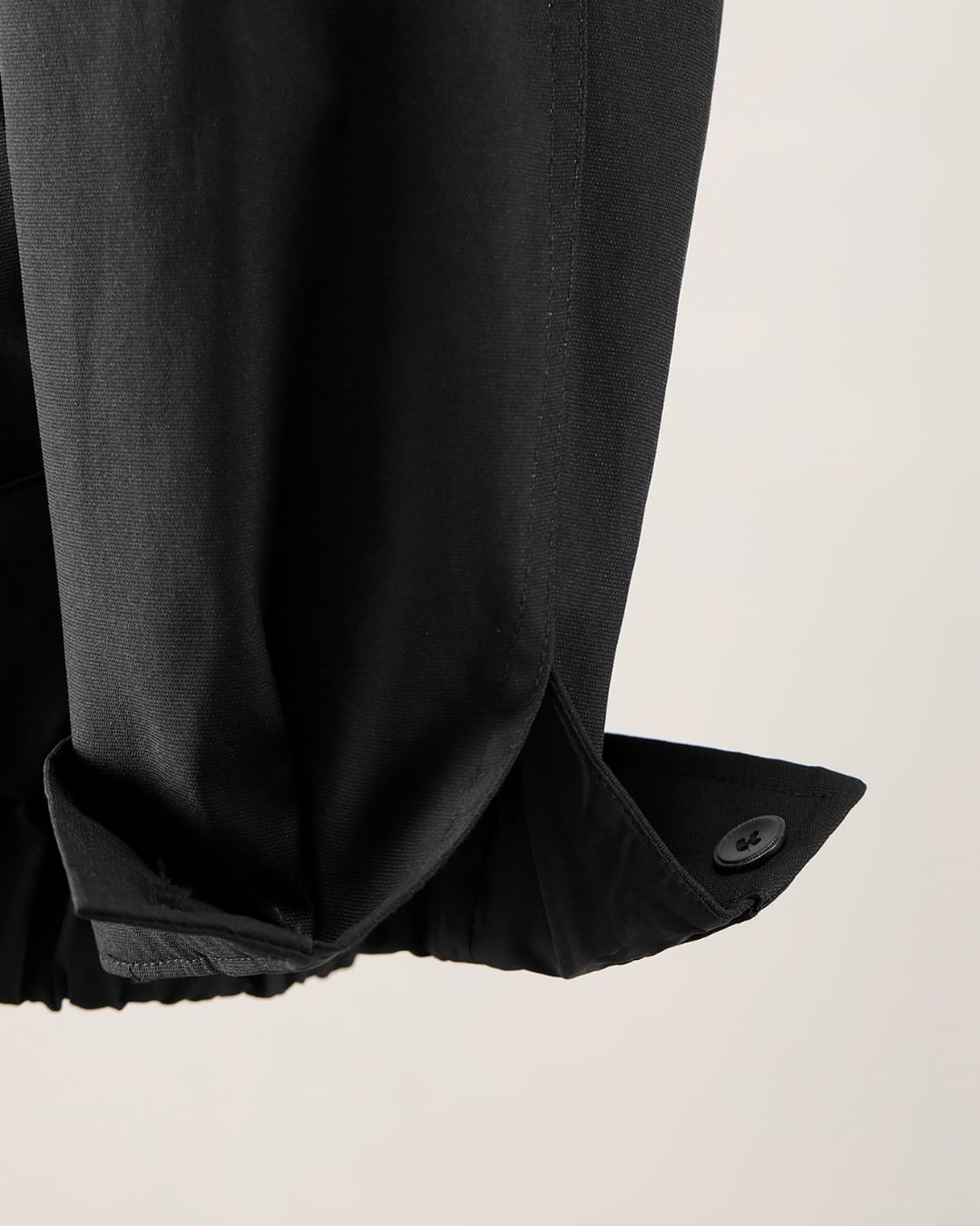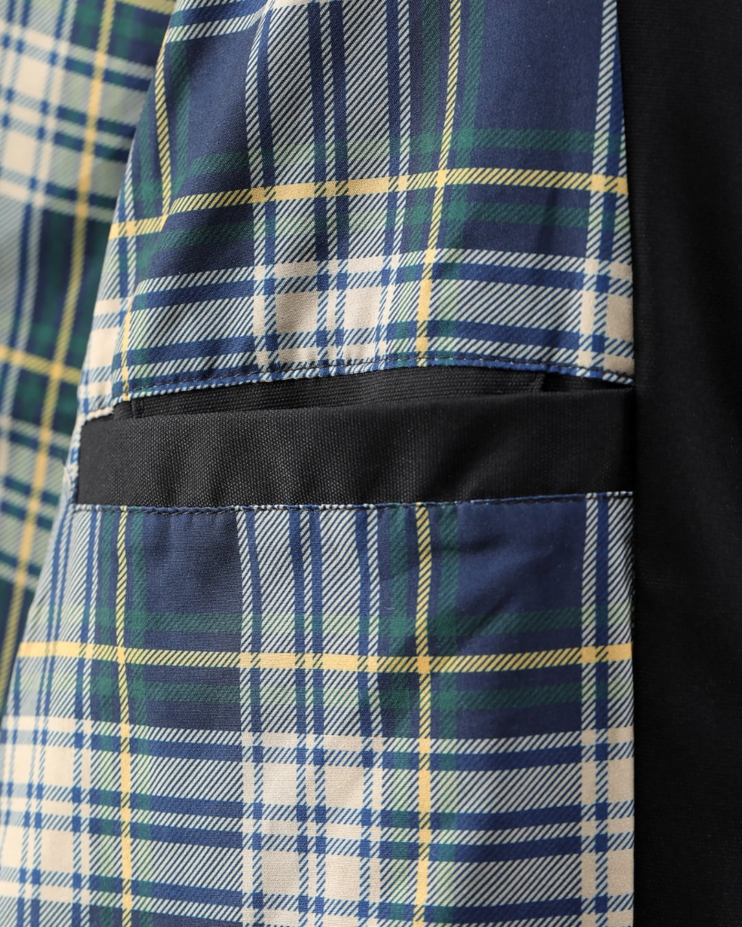 シンプルなブラックの表情に、内側のチェック柄がアクセントとして効いた一着。