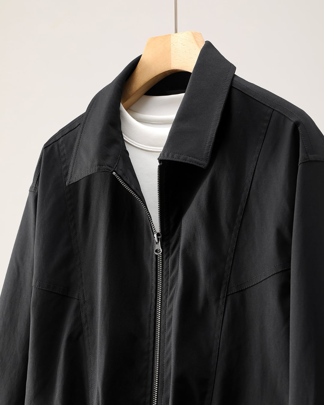 フロントはジップ仕様で着脱しやすく、インナーを選ばず幅広いスタイリングに対応。