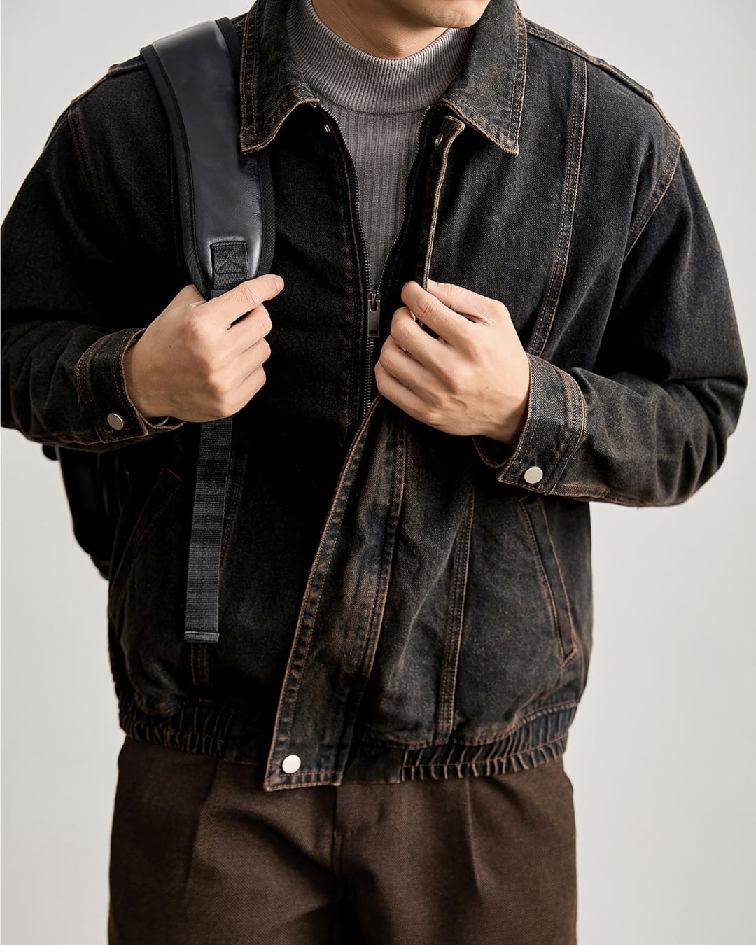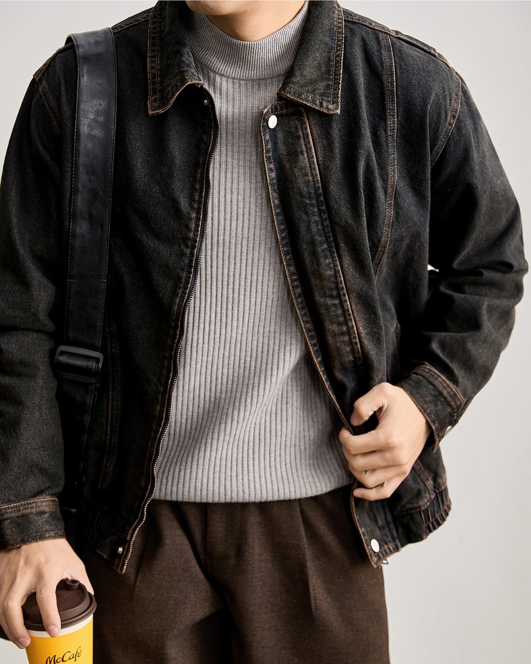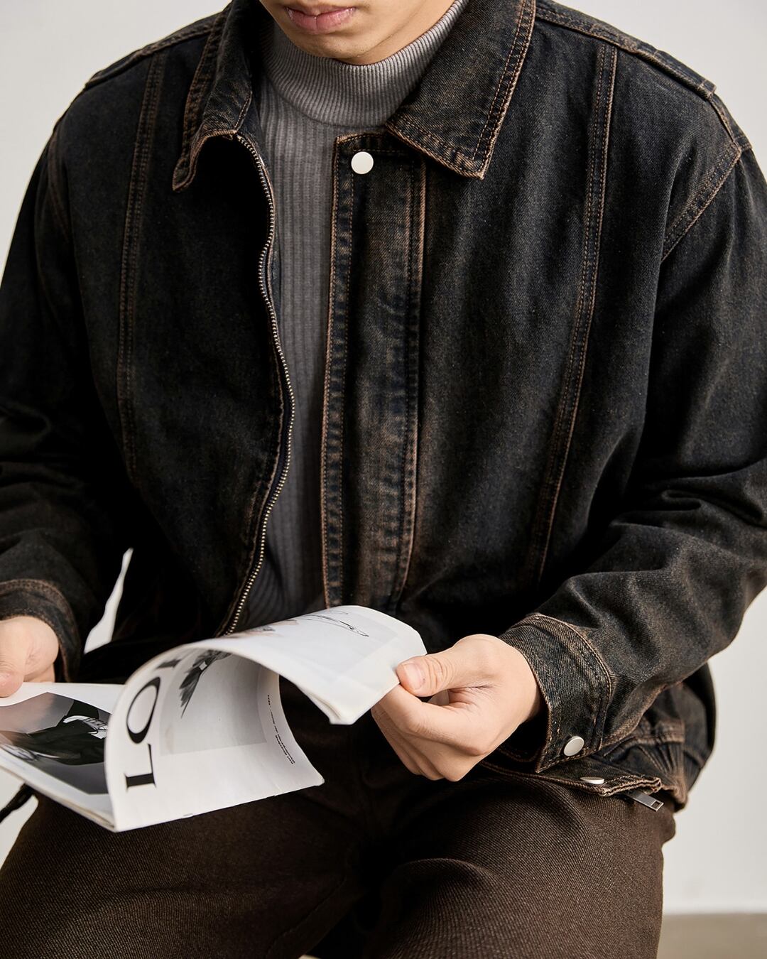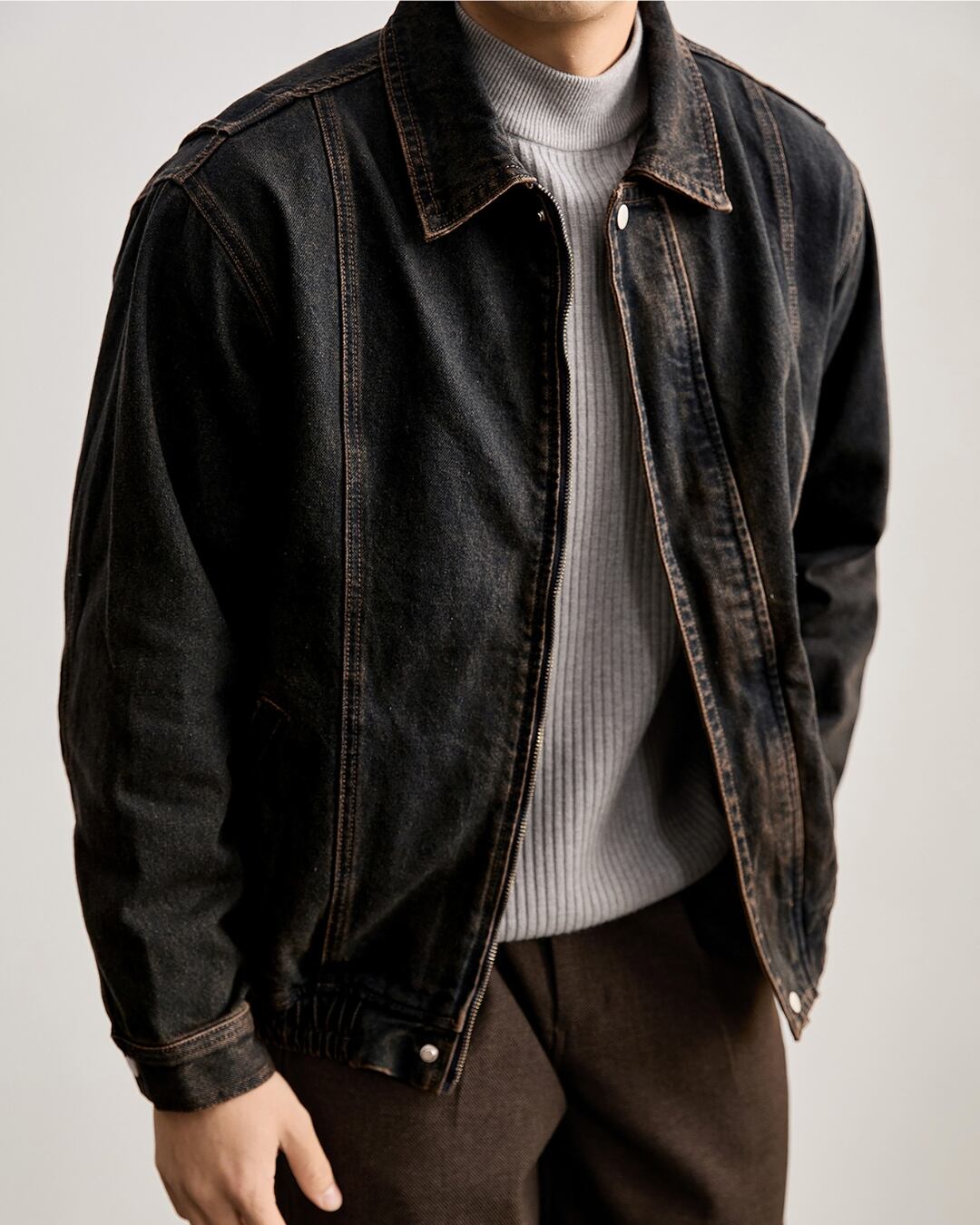 ジップ仕様ですっきりと仕上げた、ヴィンテージ感のあるデニムブルゾン。