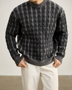 トップス:クラシック ケーブル編みクルーネックニット A0031