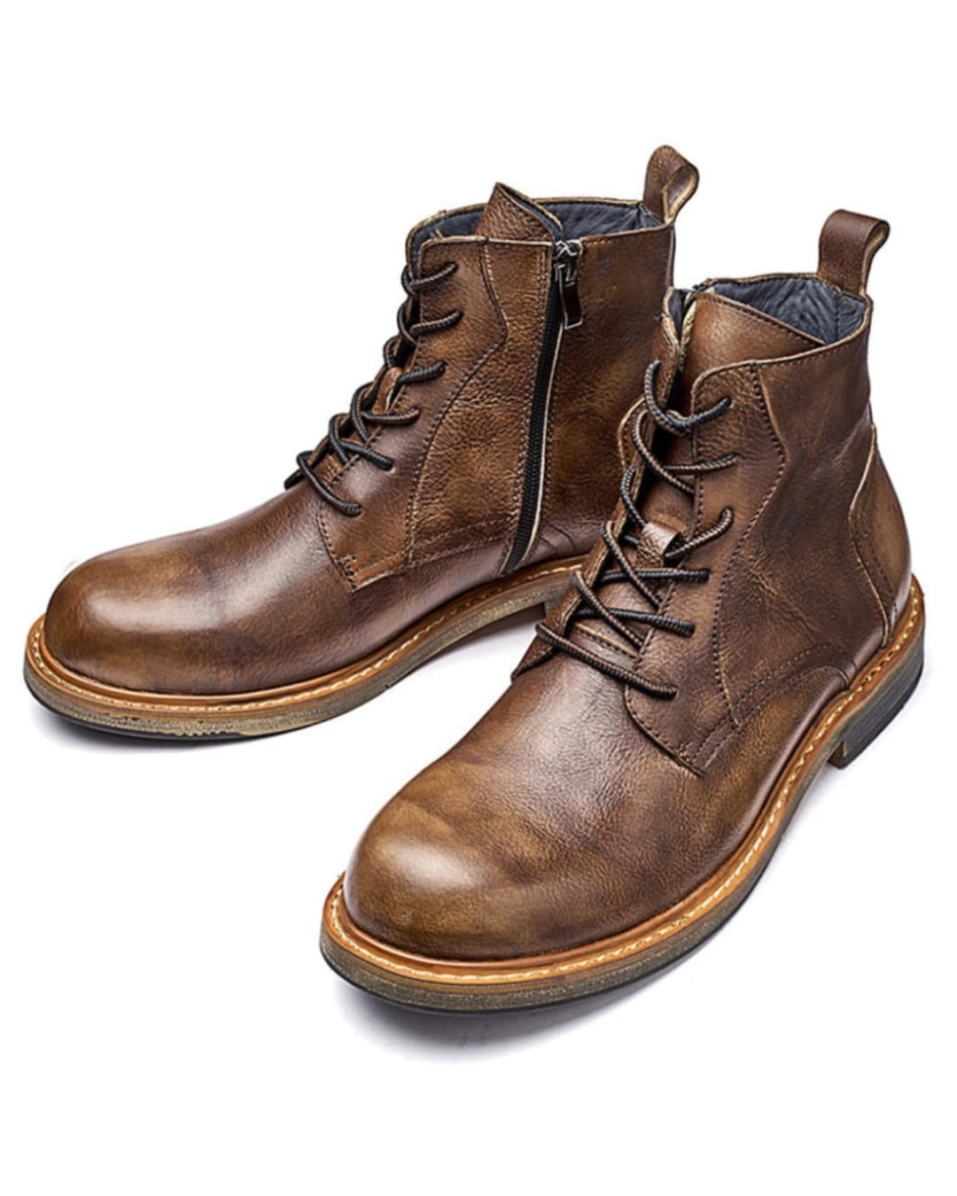 シューズ:レースアップ サイドジップレザーブーツ A0175